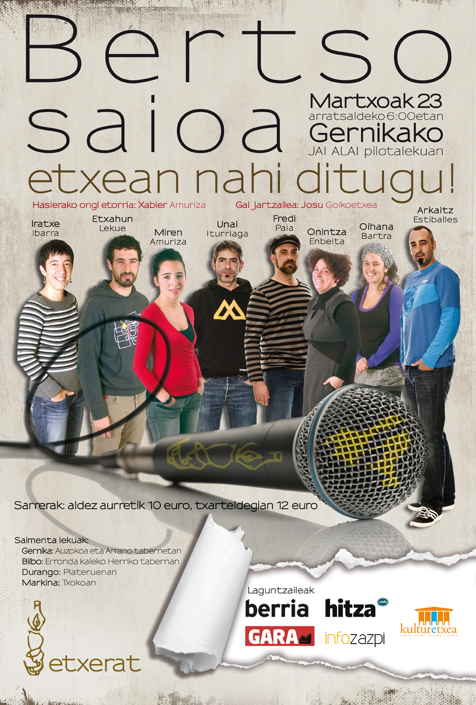 Martxoak 23 (domeki) bertso saiu GERNIKAn, “ETXIN NAHI DOUZ”