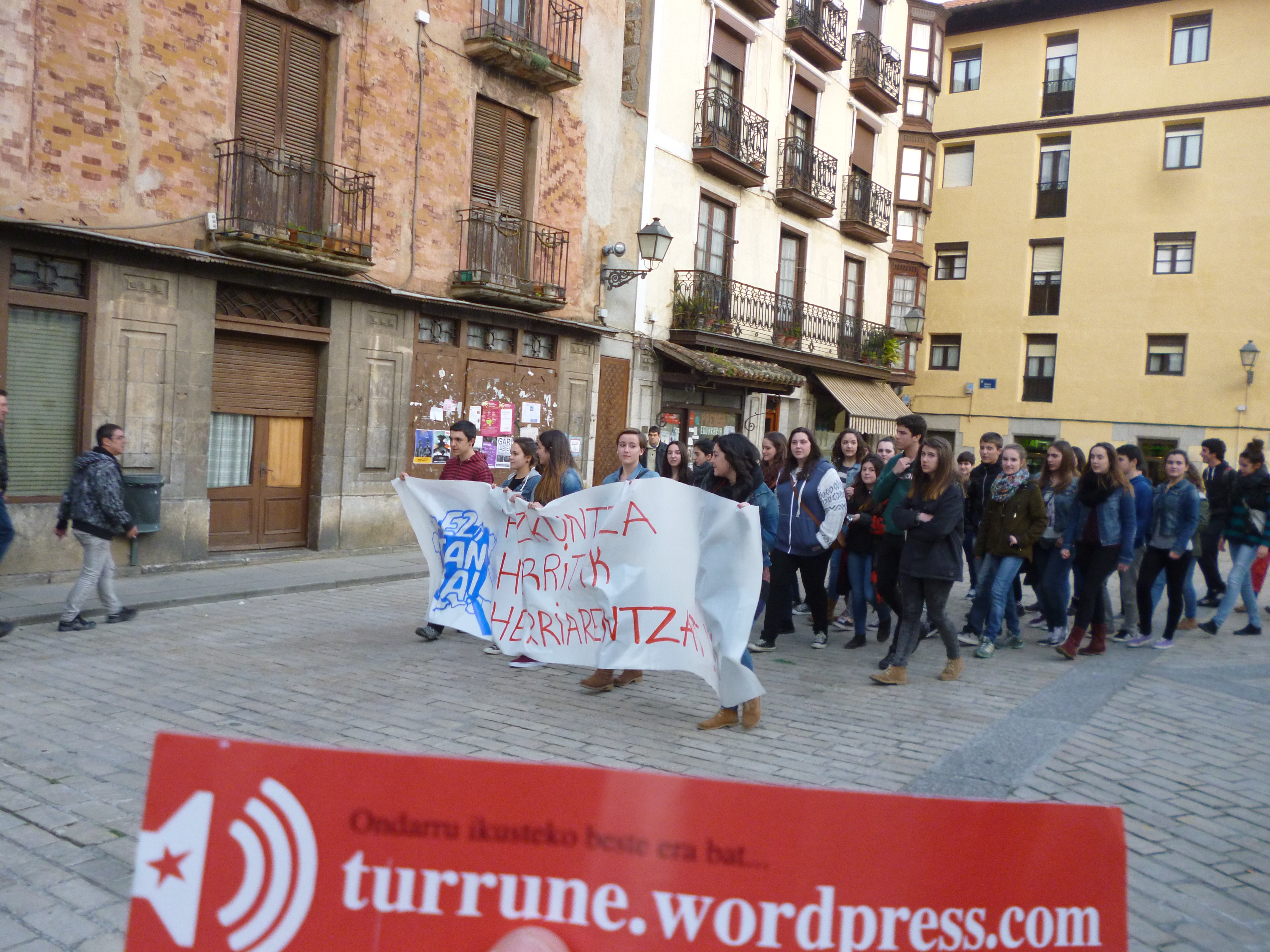 Pasan baixakun ikaslik mobilizaziñoi egune euki ben, goxin herriko institutun eta arratsaldin eskualde mailako manifa bateaz amatxu ben egune.