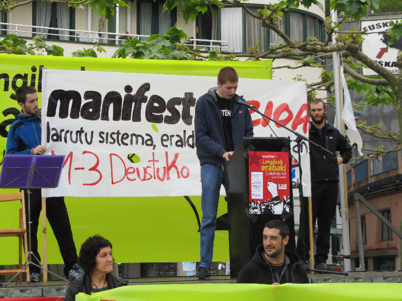 Gaur bihargiñok ez dakau motibo askoik egun hau ospatzeko, ikusitxe zelako egoeri bixi douen, eta esan bir dou iñoiz baño arrazoi gexa dazela kalea urteteko gure eskubidin alde burrukan etxea. Hoixe einddou gaur herrittar askok Euskal herri guztin. Hamen ONDARRUko irudixak