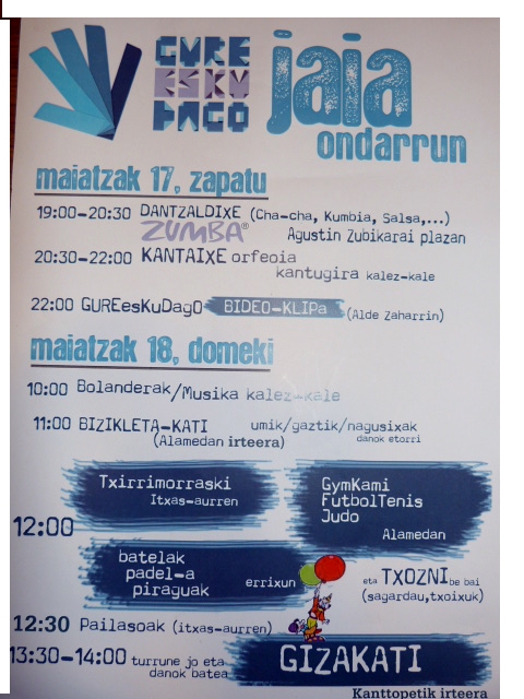 eta asteburu girotzen juteko, atzo kalea urteben esku orrixak banatzen, kamisetak saltzen,bertso saiu be eiben,…