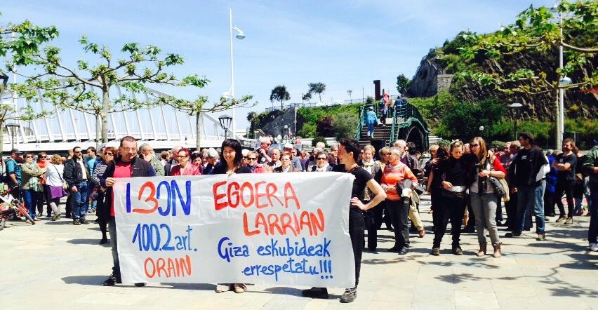 “Larri dauden presoen egoeraz kezkatuta elkartu gara gaur hemen”. Hainbat sektoretako norbanakoek egin dute manifestaziorako deialdia, eta horien izenean hitz egin du Iera Arantzamendi Ondarruko Iparra Galdu Barik plataformako kideak. Azaldu duenez, 11 dira gaixo dauden euskal presoak. Horien osasun txostenen “atzean” giza eskubideen urraketa dagoela azpimarratu du Arantzamendik. Iosu Uribetxebarria, Ventura Tome eta Ibon Iparragirre presoen adibideak jarri ditu: “Ibonen egoera dohako sufrimendua bilatzen duen espetxe politika baten aurpegirik kurdelenetarikoa da”, adierazi du. Apirilean Basauriko espetxetik Navalcarnerokora (Madril) urrundu zuten Iparragirre.