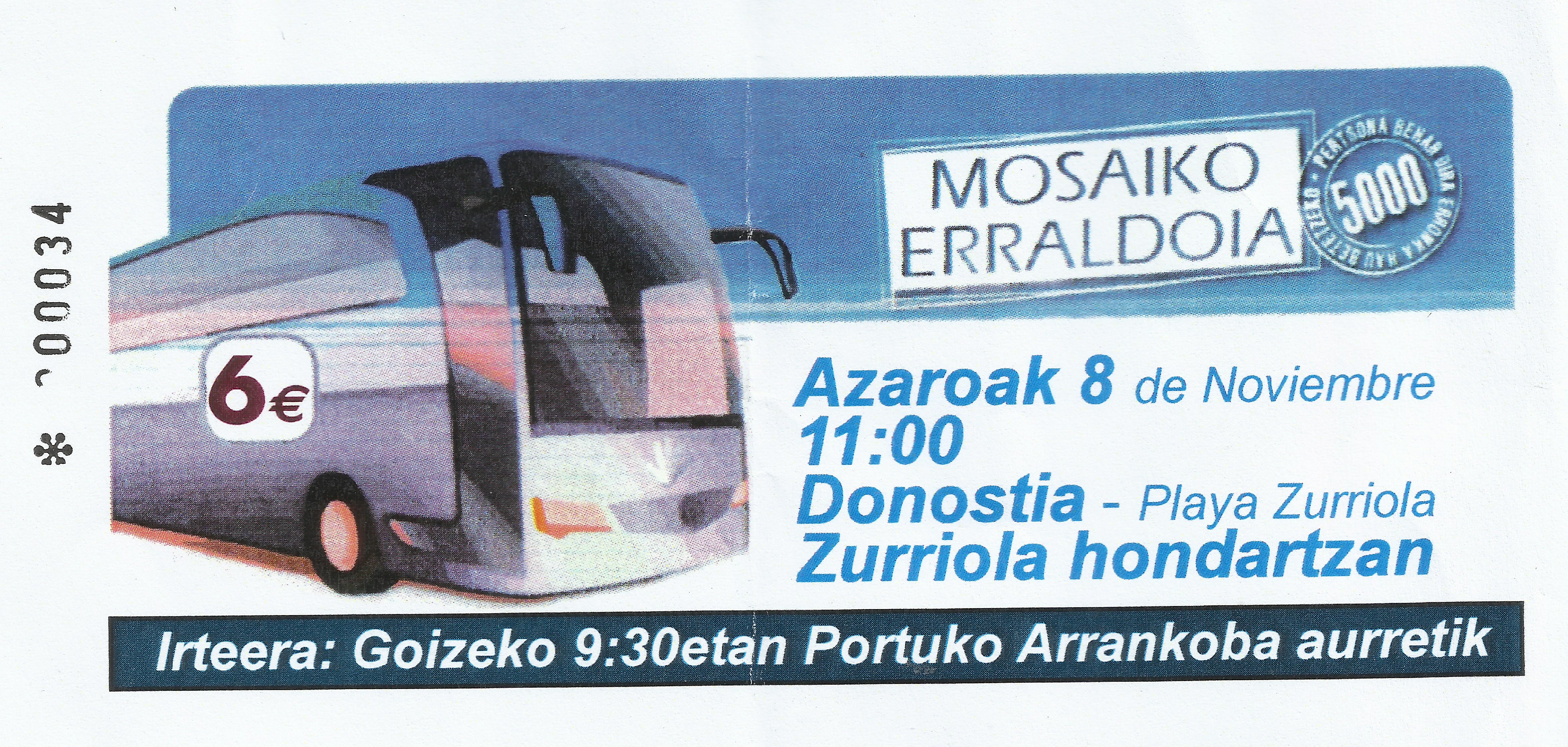 Autobus oso bi beterouz eta horretaz gain jende asko kotxitan du (egun pasa etxea) bixar Zurriolako hondartzan eingo dan mosaikure. Autobusak portun hartuko douz (ARRANKOBA aurrin) eta irteeri goxeko 9:30xetan ixango da. Ekintza koloretsu honen helburu KATALUNYArrai elkartasune erakusti ixango da. Mosaikuaz aparte, domekan motibo bardiñaz Alamedan batuko gaz eguerdiko ordu batetatik ordu bixeta. Bertan urna bat jarrikou KATALUNYArrak erabiliko daben boto paperakin beteteko.