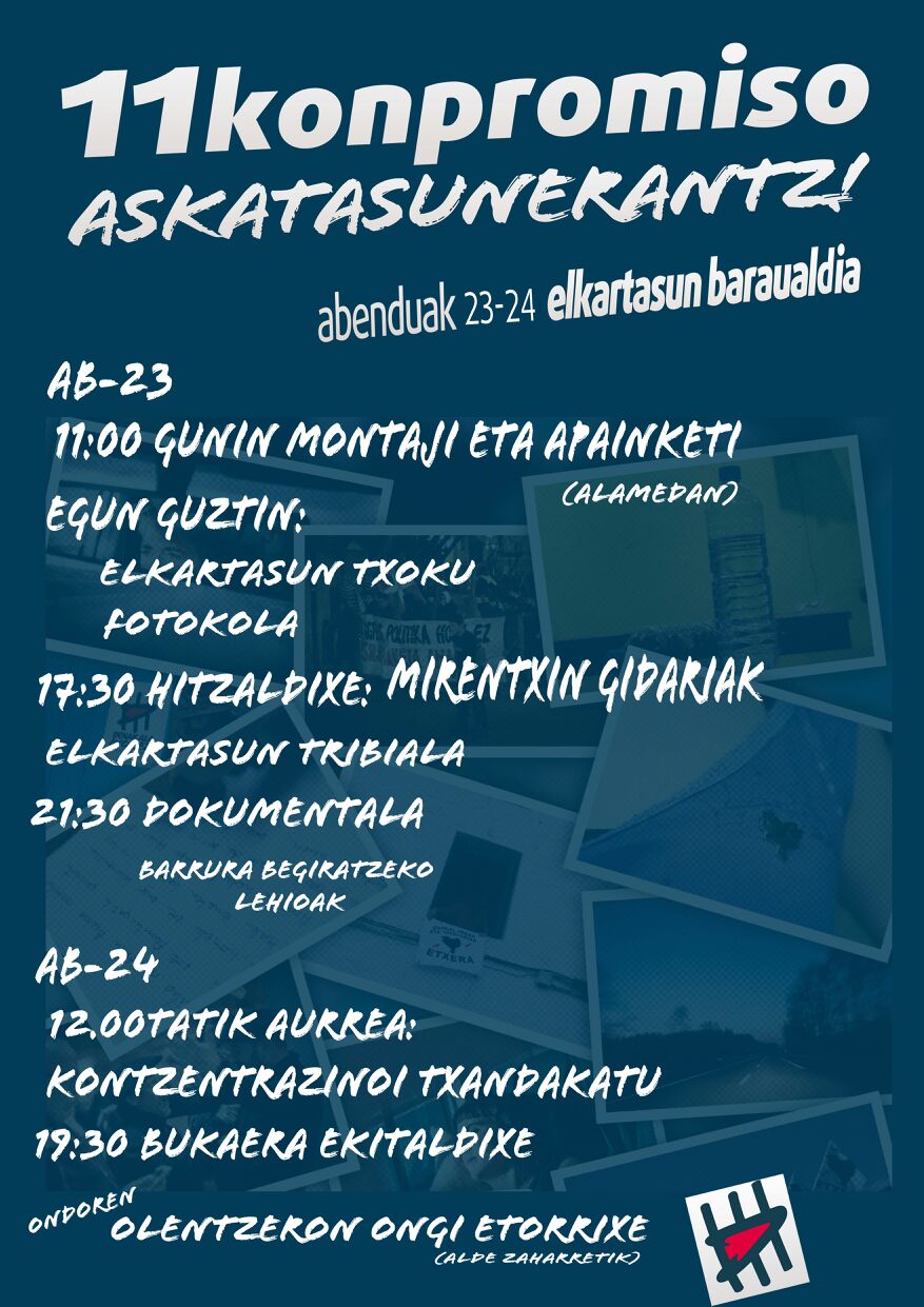 Gabonak egun politxak eta egun gogorrak diz aldi berin; politxak matxe zatxuenan tartin bazaz etxeko berotasunin; gogorrak etxetik kanpoa baza inungo epeltasunik baik… Alla erain zeure elkartasune kartzeleta! Ez daitxezela bakarrik sentiu! Idatzi, idatzi eta idatzi! karta luzik edo postaltxu! Helbidik “idatzi presuai” atalin dakazuz! Sellu erosi, pea… Eta inportantiena: BIXALDU (ezautzen ga-ta)!