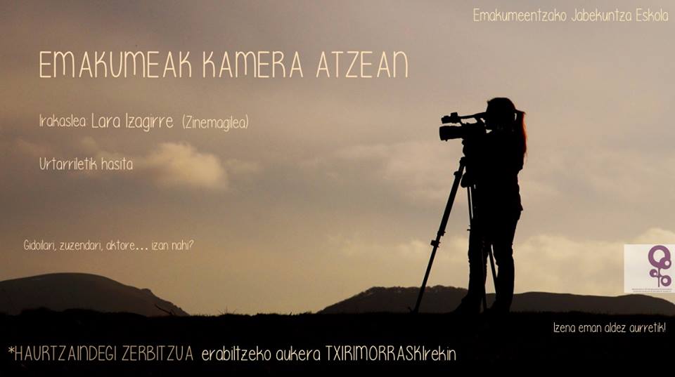 Gaxe: Gidoilai, zuzendai, aktore… ixan nahi? Ikus-entzunezko tresnak erabiltzeko beharrezkuk dizen ezaupenak gerturatzeko asmuaz, Emakumik kamarin atzin ikastaru burutuko dou Etxelilan. Parte hartzi eta elkarlana beharrezkuk diz ikastaro praktiko honetan. Emakumik film labur bat ekoizteko aukeri eukiko dabe: gidoi idaztetik, grabaketa eta ediziorarte bidaiatuko dou, zineman mundun gure lehen urratsak emonaz film labur baten grabaketin bidez!