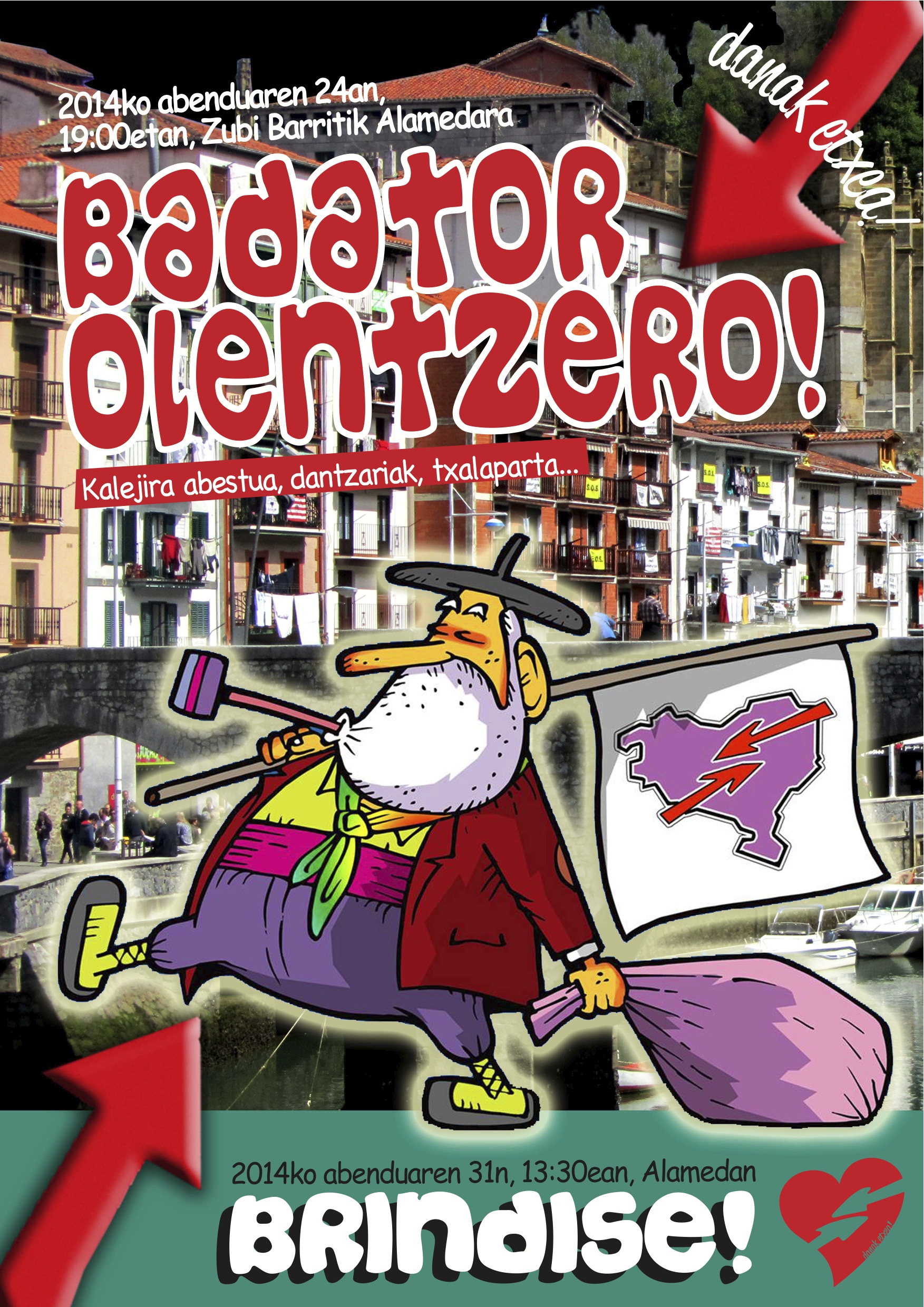 Ondarrutar preso eta iheslaixan lagunak, urtero lez, ekintza bi antolatutxuez, bata Olentzeron kalejiri gabon egunin iluntzeko 19:00etan Zubi Barritxik Alameda (bai, aurten rekorrido aldaketi) dantzaixakin, antortxakin, kantu-kantari… Eta Gabon Zahar eguerdire aldatu re falta dizen lagunakatxik brindise: 13:30xetan ixango ra Alamedan (Itsasaurreko Udalan kontzentrin ostin)… Brindiseko lehenengoko tragu geure konture… beste guztik… (beste guztik Kakatzanekuai ostukotsauz, bertan eukiko dabe mahaixe ipiñitxe-ta :))) Ondo igaro gabonak, urte barri on danoi eta, ia datorren urtin, honeik ekintza guztiok antolatzeko premiñaik ez tan! Matxe-matxe!