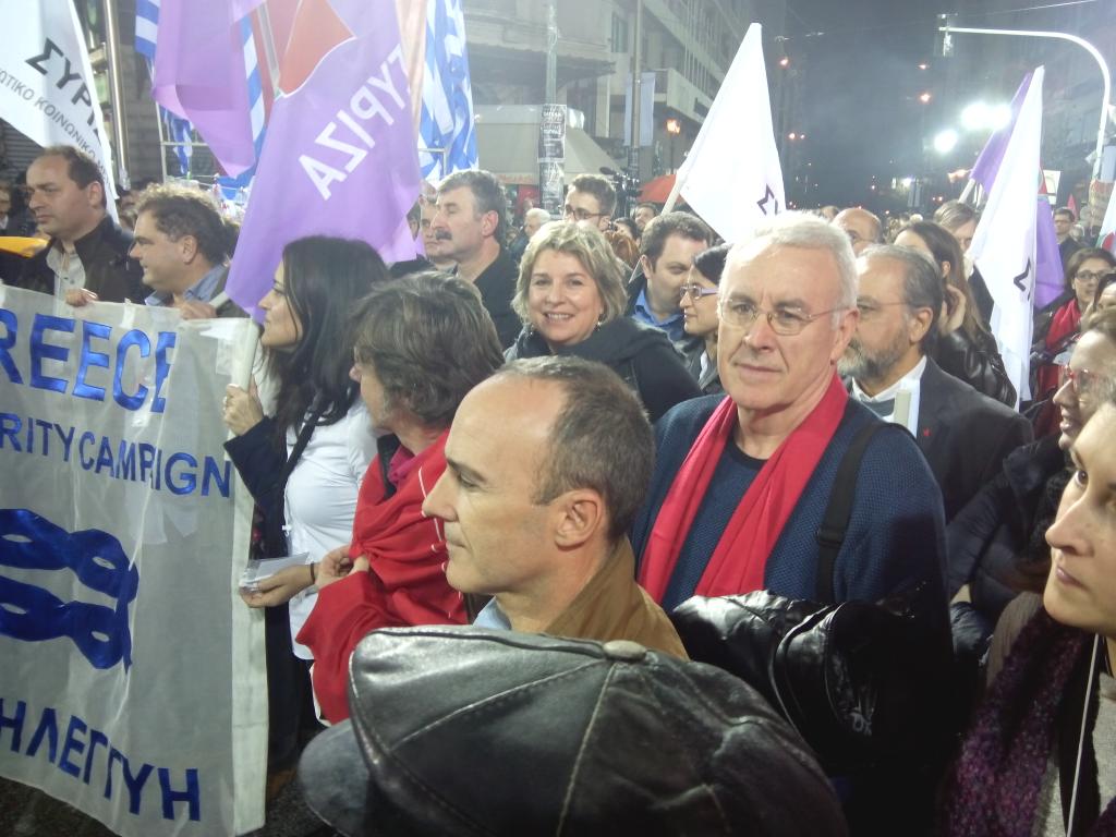 Hau argazkixe be berak atataku de: Josu Juaristi EH Bilduko europarlamentaxu Atenasen, Syrizan mitin baten.