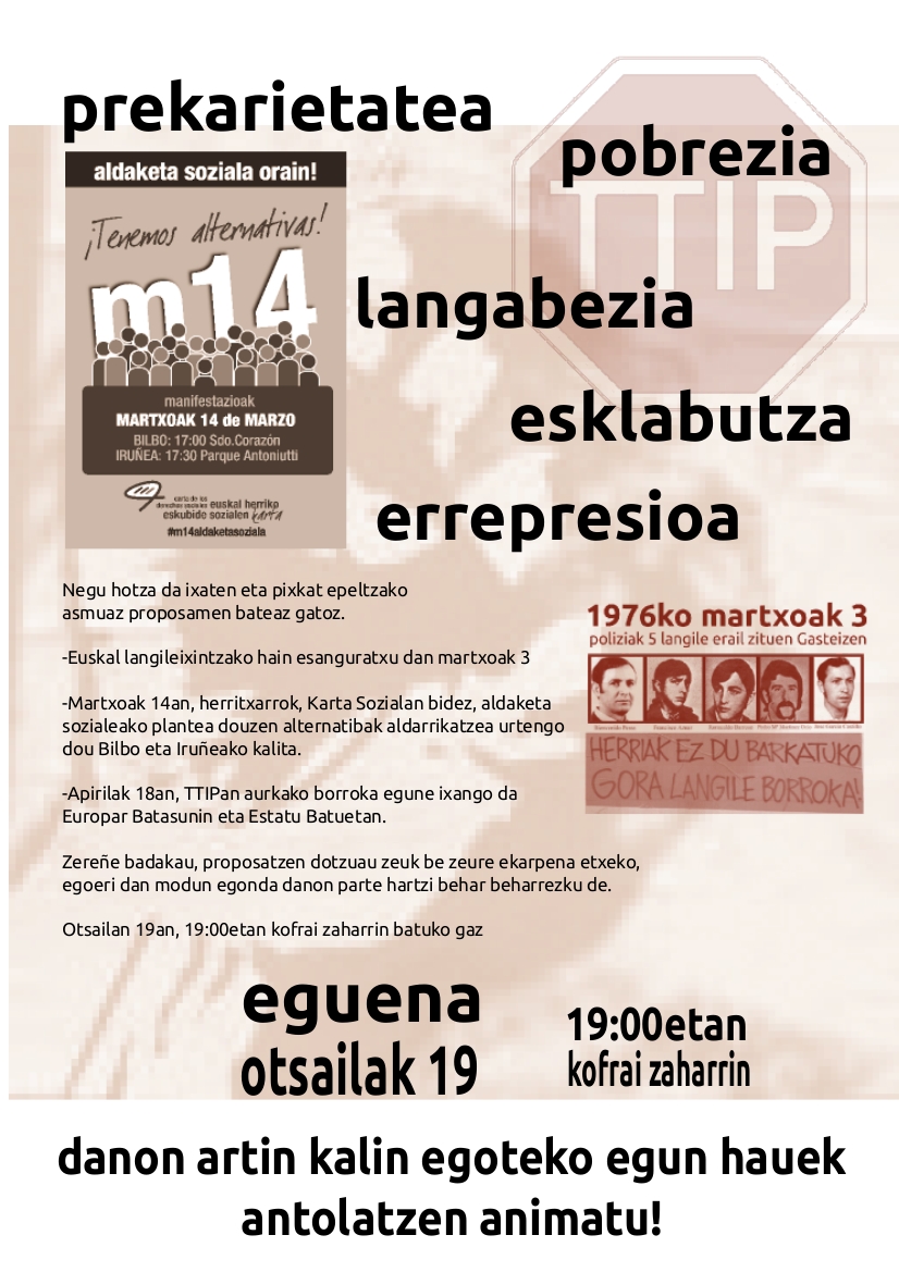 Otsailak 19 (eguena) hurrengo aldarrikapen sozialak preparateko batzarra