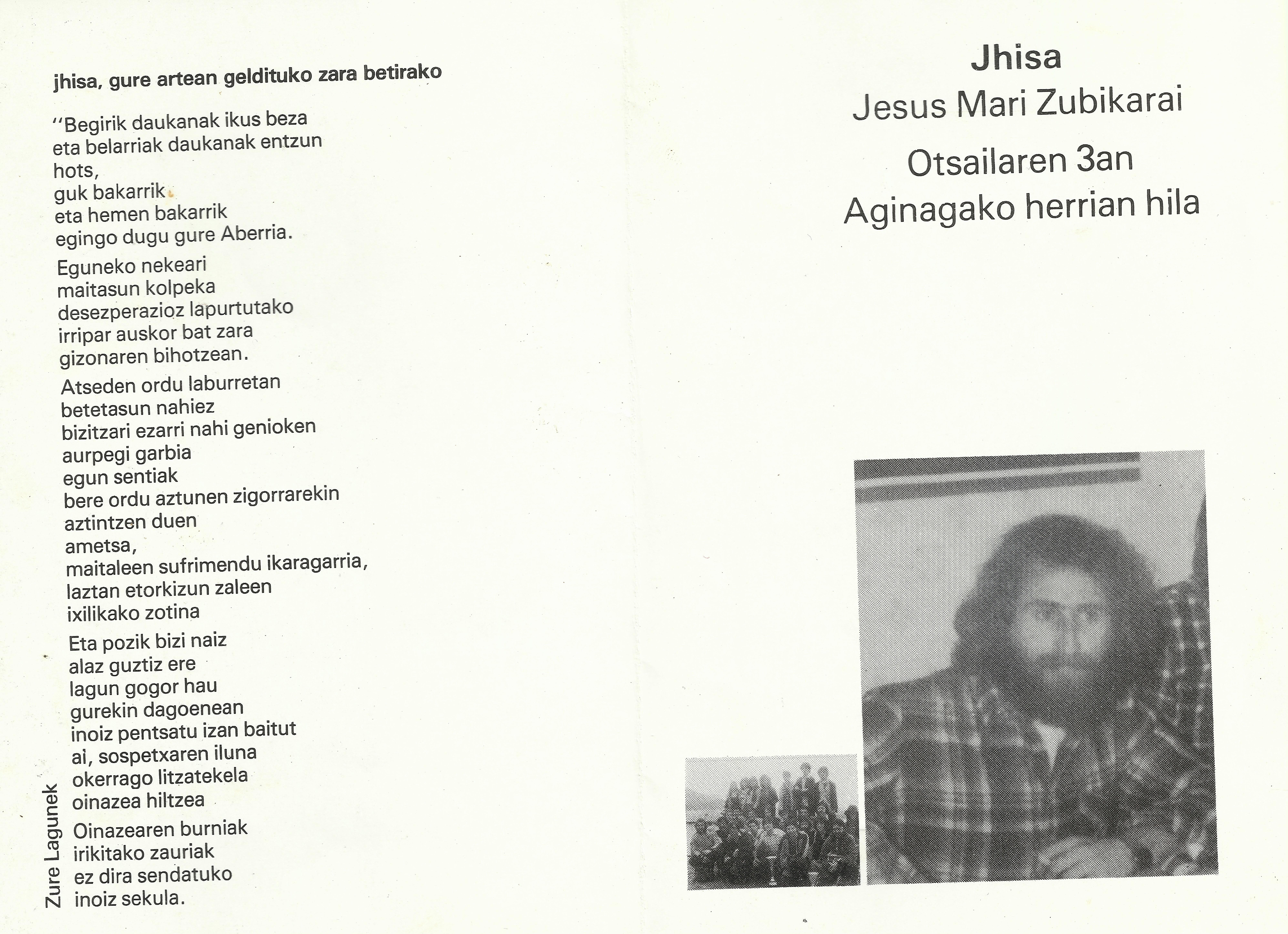 Jesus Maria Zubikarai atxilotu eta Basauriko espetxean egon zen 1975ean, ETA (pm) erakundeko kidea izatearen akusaziopean. 1979an berriro atxilotu zuten. Bahitu eta hil zuten egunean, etxean afaldu ondoren lagunekin irten zen kalera, eta neskalagunarekin izan zen goizeko 05:30ak arte. Ordu horretan bere etxera joan zen, bakarrik. Horrez gero ez dago gertatu zenaren berririk. Zubikarairen gorpua bide bazterrean botata agertu zen Eibarko Aginaga auzoan, mendian. Bost tiro zituen gorputzean eta lau buruan. Inguruan bi kaskilo eta bota gabeko beste bala bi aurkitu zituzten. Aginaga auzoko baserritarrek 06:30-07:00 tartean tiro hotsak entzun zituztela adierazi zuten, Zubikarairen gorpua agertu zen aldean.