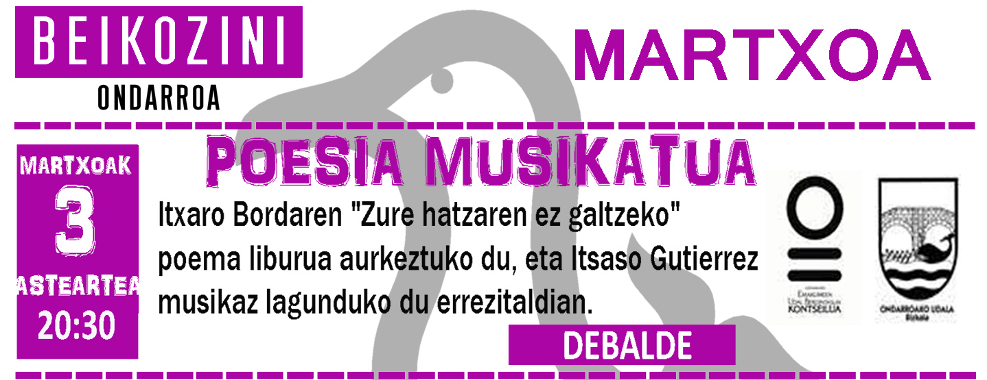 Martxoak 3 (martitzena) Itxaro Borda Beikozinan Irudia 2015/03/012015/03/01turrune Partekatu hau: Click to share on Facebook (Opens in new window) Facebook Click to share on X (Opens in new window) X Atsegin dut Kargatzen...