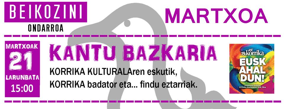 Martxoak 21 (zapatu) KANTU BAZKAXE Beikozinin KORRIKA datorrelako