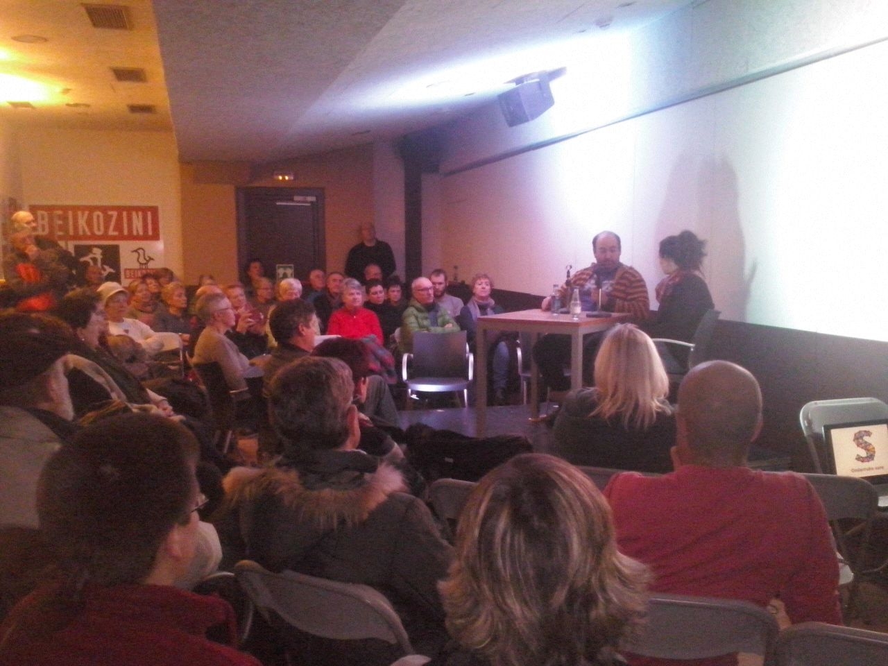 Bide batez, joan den otsailaren 7an, Beikozinan “dispertsioari buruzko elkarrizketa” egin genuen. Bertako argazki bat bidaltzen dizuegu. Oso interesgarria izan zen Naroak eta Arkaitzek esandakoa. Baina, jende-kopuru aldetik txukun atera zen arren, gure pena bakarra, dispertsioaren inguruan orain arte interesik jarri ez duen jende gehiago hurbildu ez izana izan da.