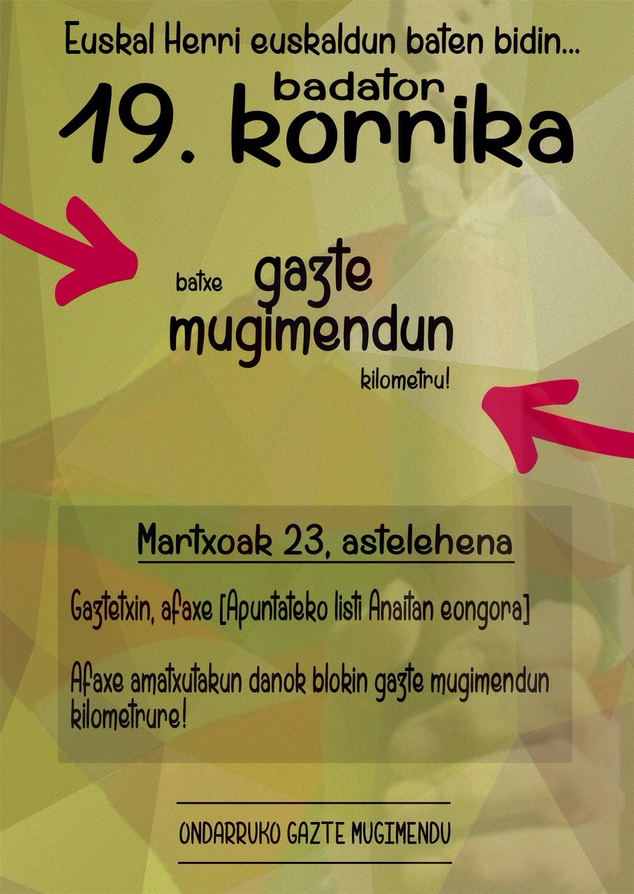 Alde batetik, Sarekideok ere gure presoen eskubideak aldarrikatuko ditugu bertan eta kilometroa hartu dugu.