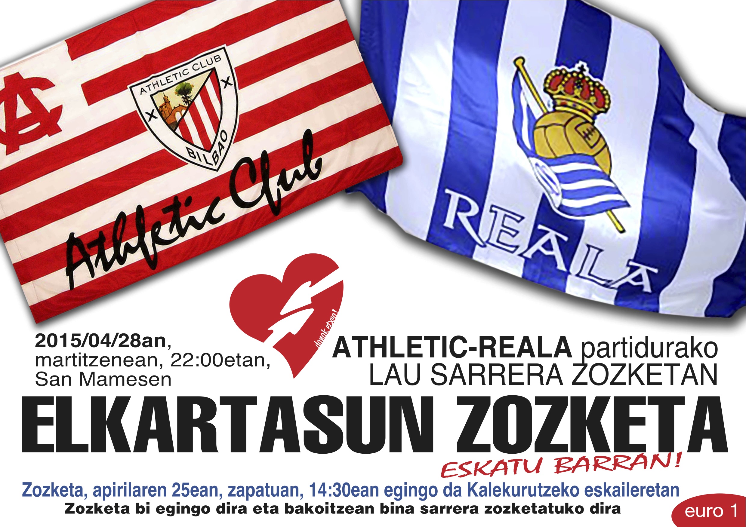 Herriko taberna ezberdiñetan eongo diz saltzen ELKARTASUN zozketako txartelak. Euro baten trukin San Mamesen egon zeinke zeure kolorik animaten eta bide batez elkartasune emoten preso eta iheslaxai.