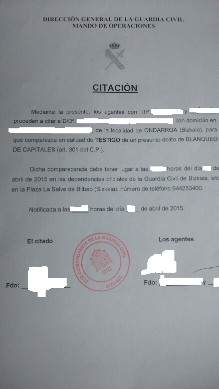 Hauxe da Ondarruko presun senidiai (Euskal Herriko guztiai kontixu) alla gakuen zitaziñoin ixenburu. Guardia zibillan buleguta jun bir ei diz (La Salvea) testigo latxeik deklaratea.