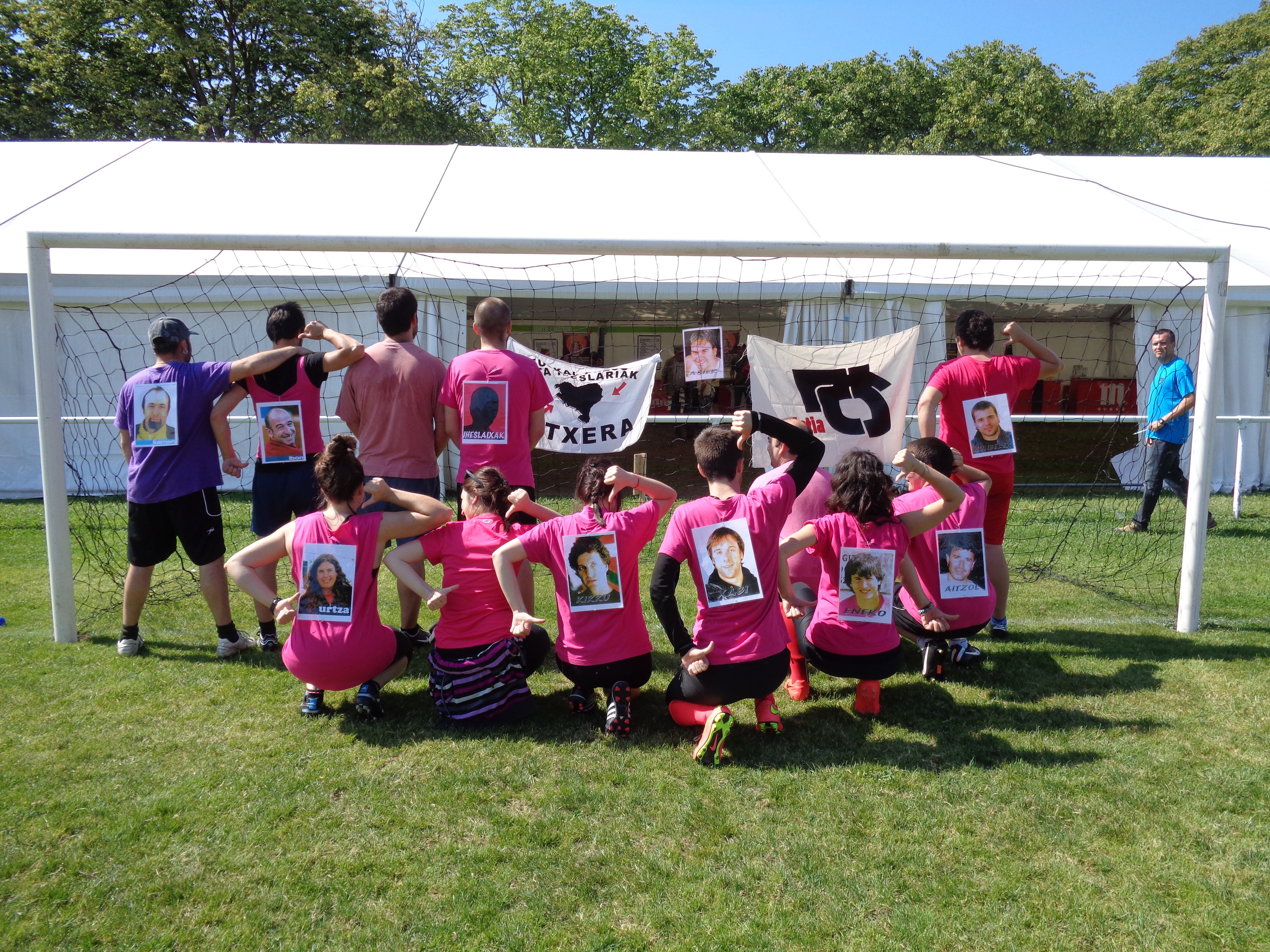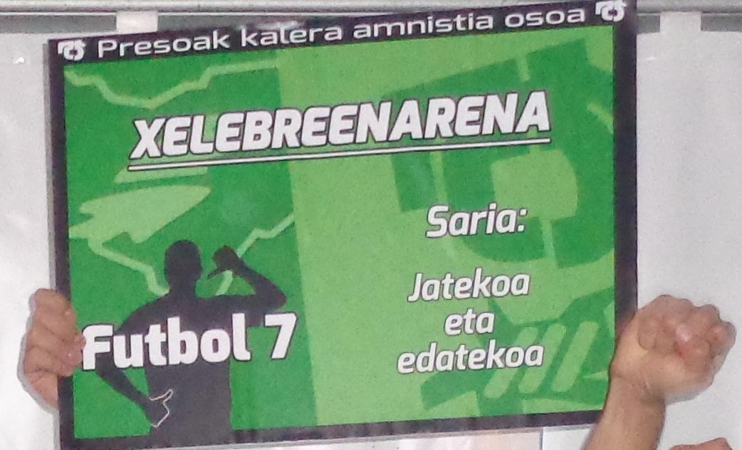 Atzo futbol egune euki gendun. BARTZELONA aldea eon giñan begire Atletixak kopi irabazteko esperantziaz, bañe beste Ondarrutar talde bat HENDAXA jun zan fuolin jokatzea preso ta iheslaxan aldeko futbol 7re. Euskal Herri guztitxik jundako jenti batu zan bertan, ONDARRUk 3 ekipo aurkeztu ban (Ondarrutarrak, Pelauk eta Ekipo Rosi) eta esko hutsik ez giñan etorri bertatik. Hamen bertan atatako irudi batzuk: