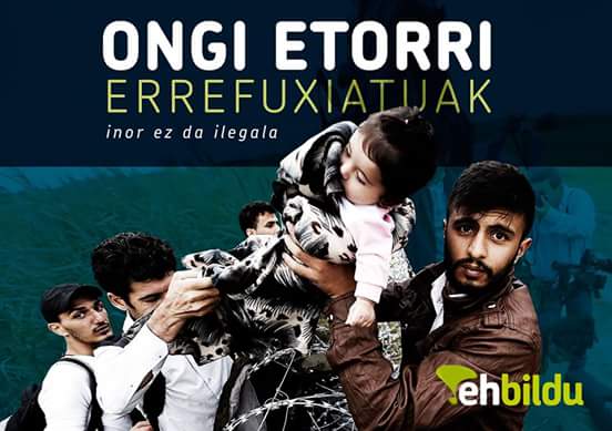 Geu be munduko leko askotan eskuzabalik hartu gatxuelako, on geure herrire datozen errefuxiatuai ONGI ETORRI esaten dotzau. Eta gure udalai eta herritxarrai eskatzen dotzau horrek errefuxiatuk geure herrixetan eskuzabalik hartzeko.