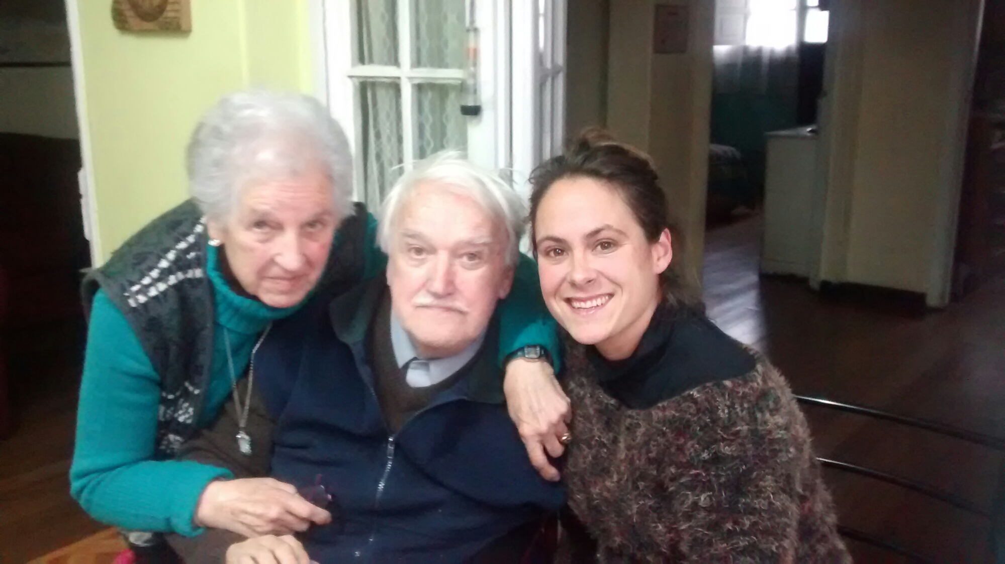 1951eko ekaiñin Parisea juten di IROa (Organización Internacional de Refugiados) pasaportik lortzea. Eta holantxen uztailan 4an Marsellatik barkun urteten dabe Buenos Airesea. 29xan ailaten di Buenos Airesea. Eta abuztun 9 arte ezin dabe abiorik hartu Santiagoa, egualdi txarrak zile ta Anditako mendikati itxitxe eukelako. Azkanin 9xan hartu ben abioi eta gogoratzen dabe egun beldurgarri baten modun. Hasi turbulentzixakin eta oxigenun maskarak-eta salto eitzen eta danak maskarak ipinitxe aila zin Txilea. Han Euskal Gobernun eskutik 8 eguneko pentsiñoi euken. Gitxinaka lana bilatzen jun zin eta bixitxa barri bat hasi ben gaur egunearte. Eurak eztiz iñox gexa bueltatu Ondarrure, bañe bai adibidez Abelen semi Ignacio Urkiola beran familixiaz.
