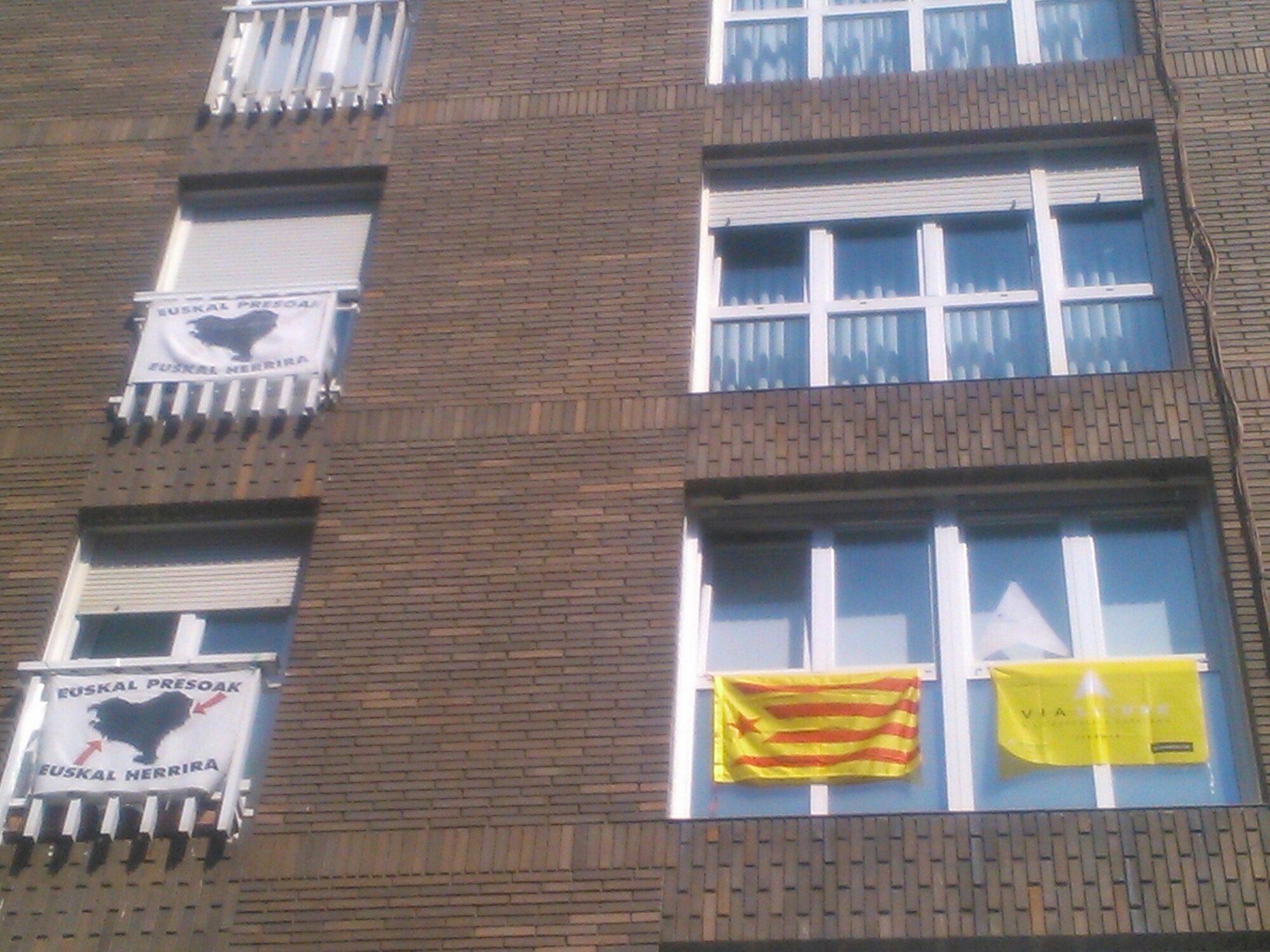 Udalak bandera katalana ipini dau, eta herriko etxe batzutan be agertu diz Esteladak. Hamen Kamiñaldeko argazki bat.