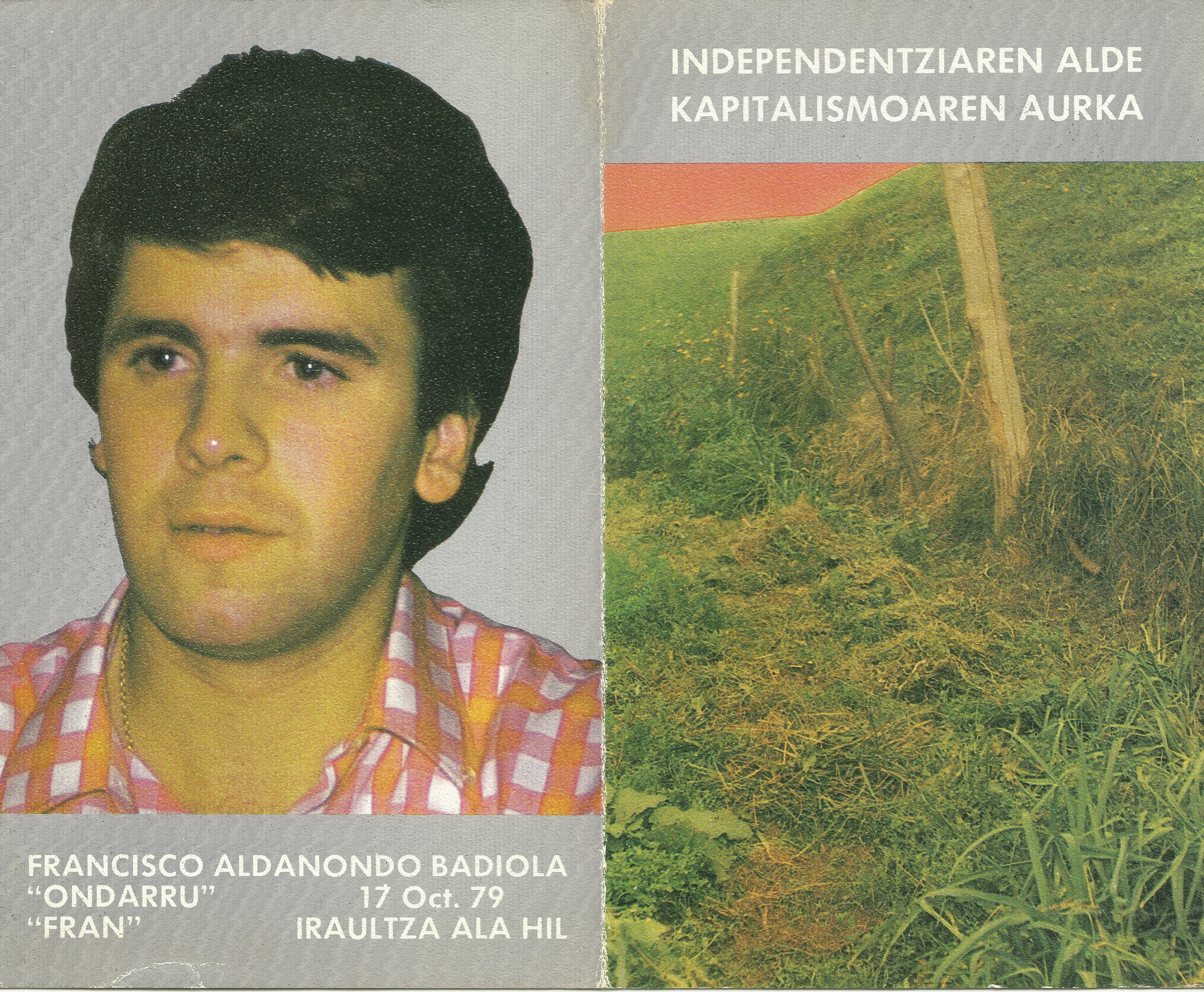 1979ko Urrixan 17xan (on dala 36 urte) Guardia zibillak hil ben FRAN, baserri baten euala IBARRAn (Tolosa ondun) tiroketa baten ostin. Diktadura sasoiko azkan preso politiku ixan zan kartzelatik urten bana.