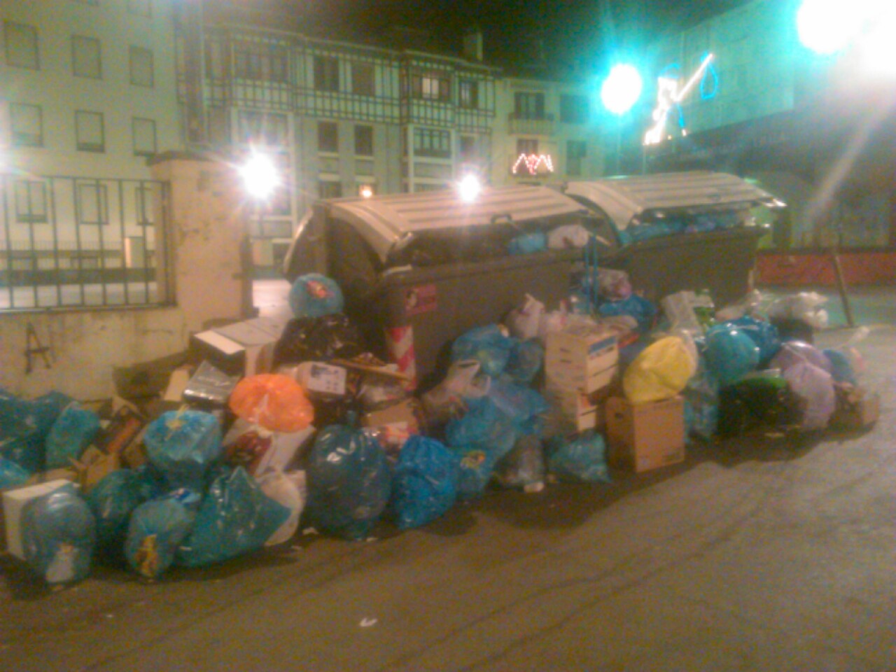 Jente bat ahalegintzen da horrek hondakinok sailkatu eta birziklatea bixaltzen, bañe beste askok zamar guzti nahastata botaten dabe.
