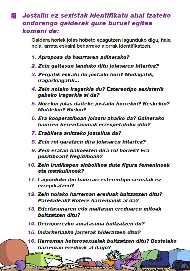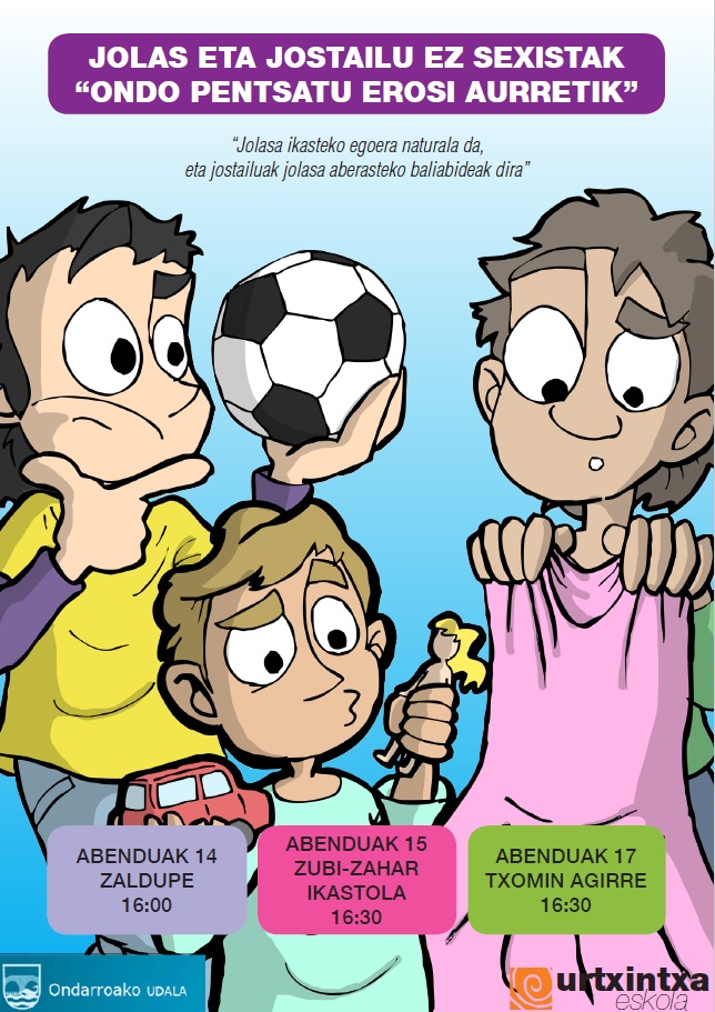 Ondarruko Udalak eta Urtxintxa Eskoli-k elkarlanin Hezkidetza egitasmun barrun, irizpide batzuk eta galdera praktikuk jolasak erosterakun.