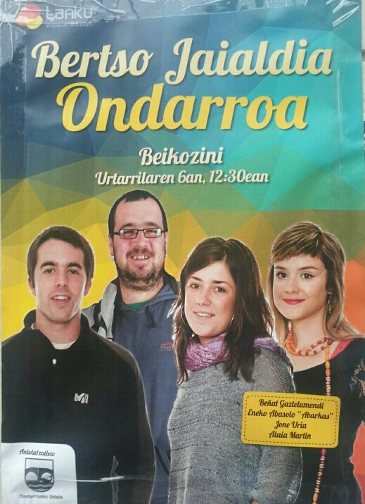 Udalak etxita banatu daben esku orrixe da beheku, bertan batzar bateko deixe etxen dau aurten eingo dan ERDI AROko jairako. Ideiaren bat badakazu, edo esku bat bota nahi ixan ezkeo, hor dakazu tokixe: Udaletxin urtarrillak 19 arratsaldeko 8retan. Danon artin hobeto etxen diz gauzak.
