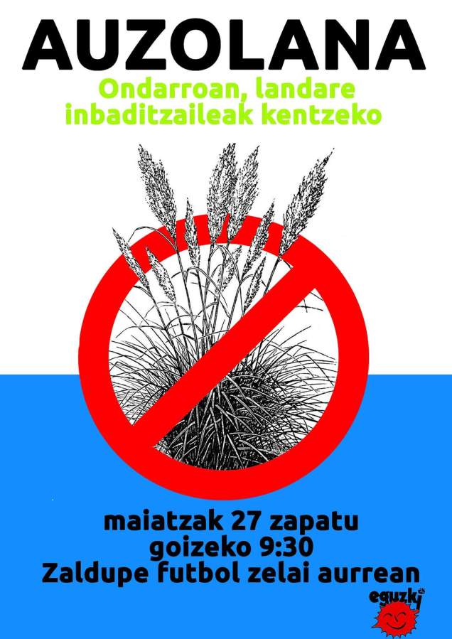 Zapatun (Maxatzak 27), auzolana LANDARA INBADITZAILIK kentzeko! 2017/05/262017/05/26turrune Eguzki talde ekologista eta antinuklearrak, auzolana antolatu dau ongoxe zapatun goxeko 9:30xetan zaldupeko zubitxik urten da, herrixan dazen landara inbaditzailik kentzeko. Partekatu hau: Click to share on Facebook (Opens in new window) Facebook Click to share on X (Opens in new window) X Atsegin dut Kargatzen...