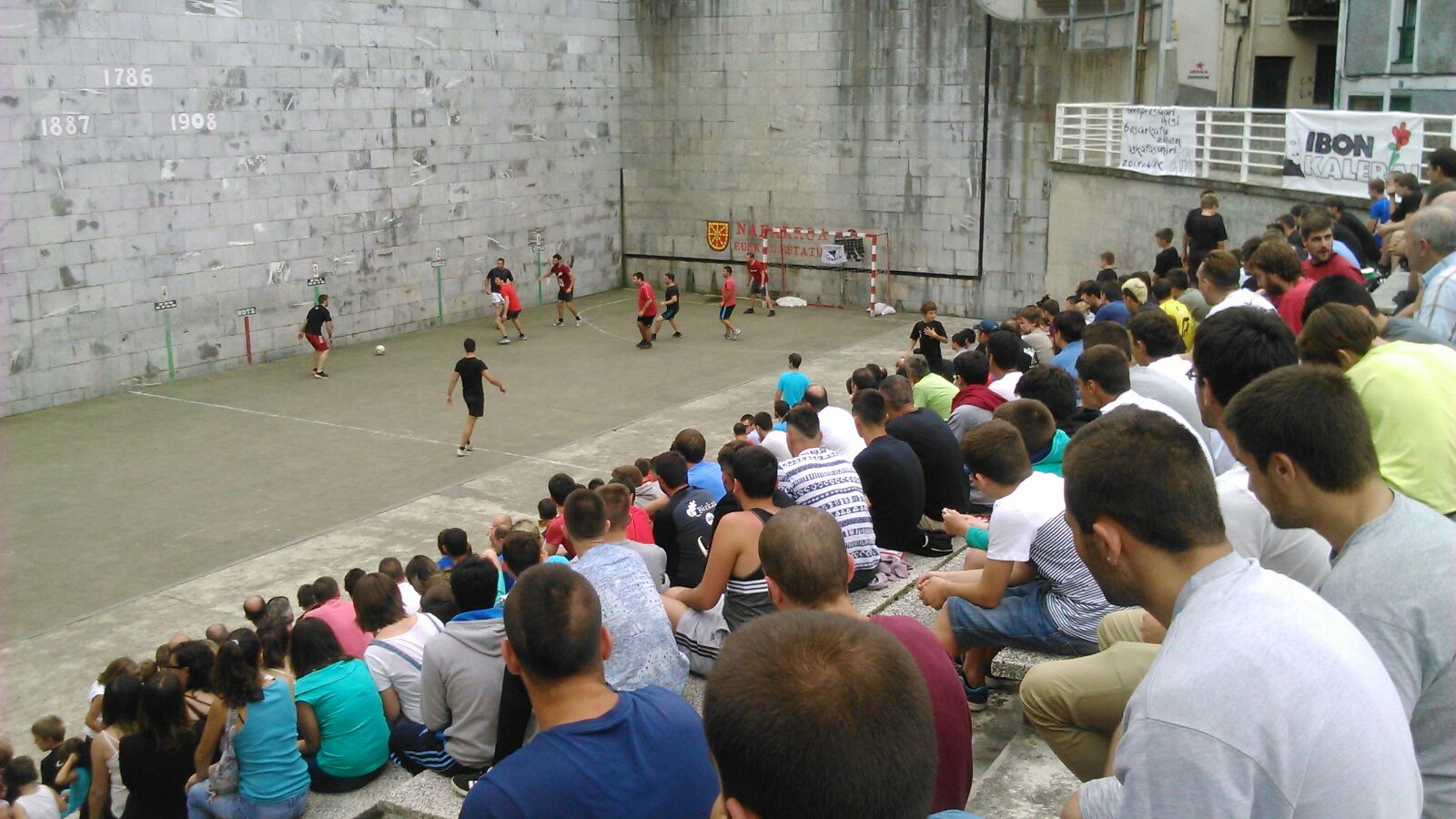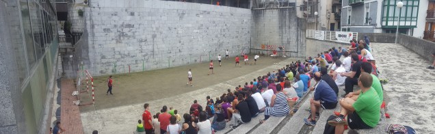 Goxeko beatzixetan hasi diz partiduk eta hasieran eurixaz jente gitxitxu egon arren, orduk pasa ahala frontoi beteta eon da… futboleruk eta futboleruk ez gazenok be, etxin falta gazkuzenai elkartasune adierazten egon ga! Bertan montata euan txosnan, bazkaltzeko eta egarrixe kentzeko aukeri be euki dou!