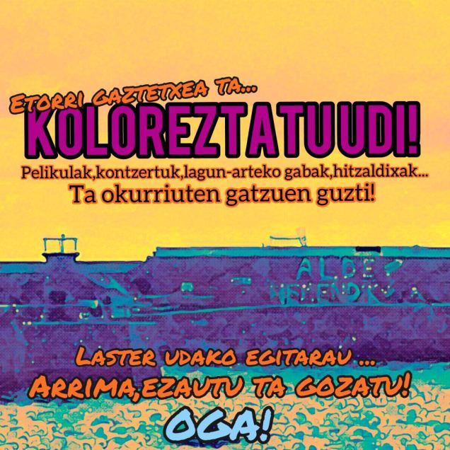 Udantzir “Koloreztatu udi” lelo morun ibilitxe hainbat ekimen antolatuko dotxuez gazte asanbladako kidik. Ekimenak puntualak ixango diz eta kartel bidez zabalduko dabe.