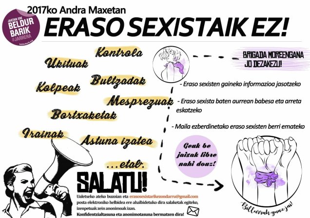 Brigada morik azpimarratu dabe eraso sexistan gaixe arazo kolektibu dela eta danon artin konponduko douela!