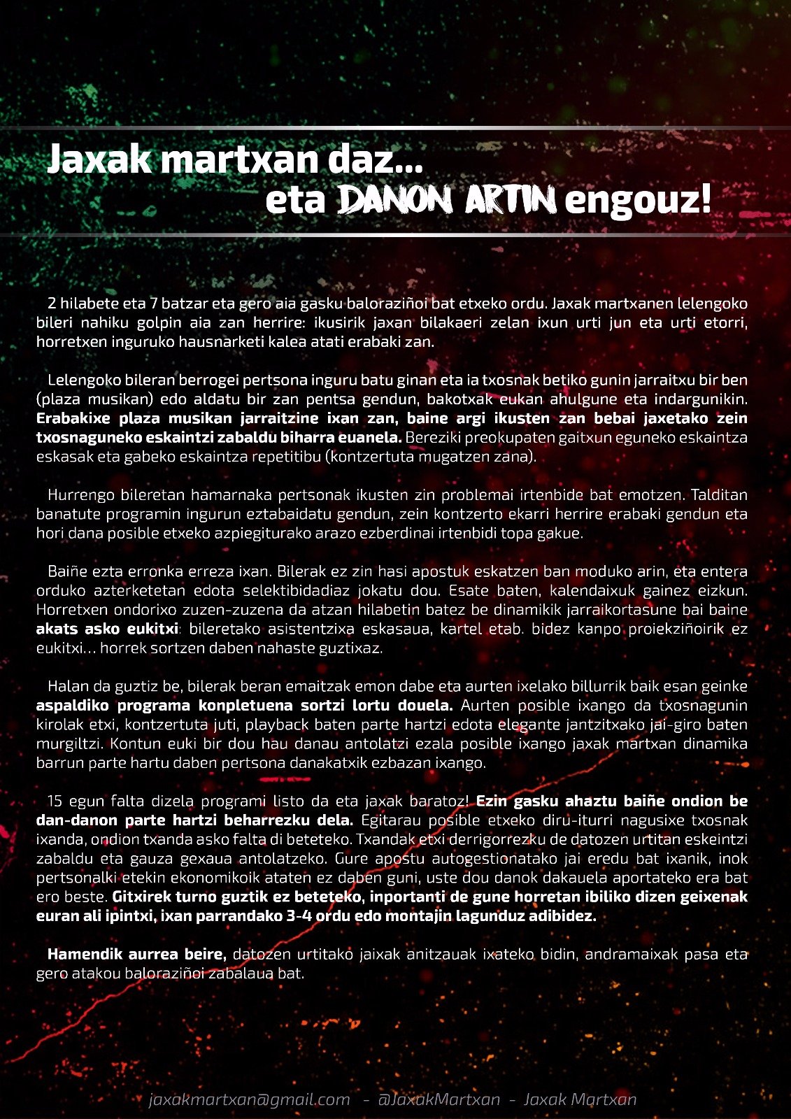 Gogoratu, Abuztun 8,9,10 eta 11an eingo diz entsaxuk Kofrai Zaharreko 3. solairun. Tanborradan gustoku bazu tanborra joti, ez galdu aukeraik eta hurreatu.