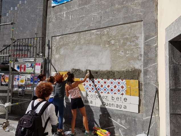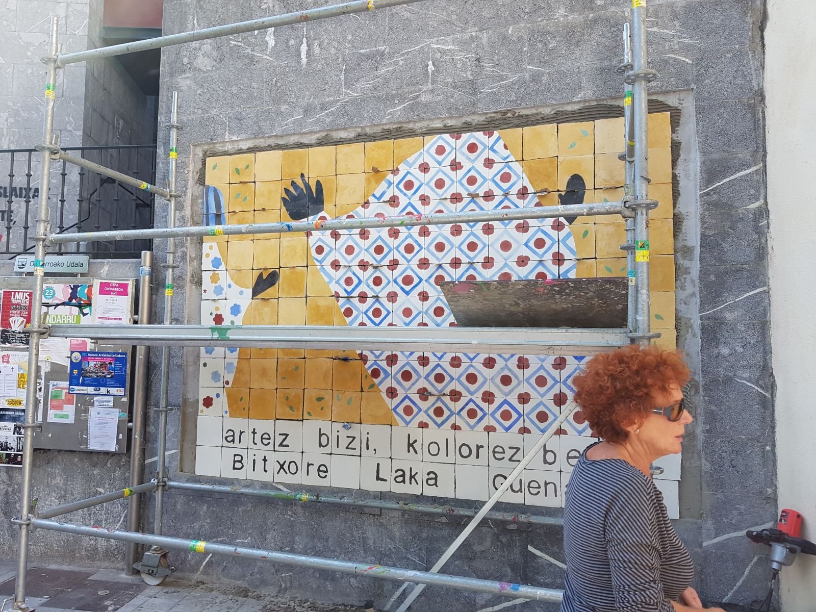 Denporan euan murala dan tokiko pareta barriztute eta handitxute, eta kurioso askorek galdetzen gendun zer dala ta holanik paeta… ba gaur peatxuez baldosak berak Bitxorek sortutako erraldoin irudixe osatzen.