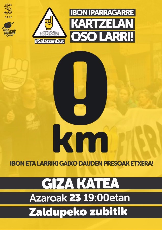 Eguen honetan (azarun 23) 19:00etan Zaldupeko zubitxik GIZA KATIK urtengo dau herri guztintzir. Deialdi hau Iparra galdu baik eta Sare k deitxu dabe.