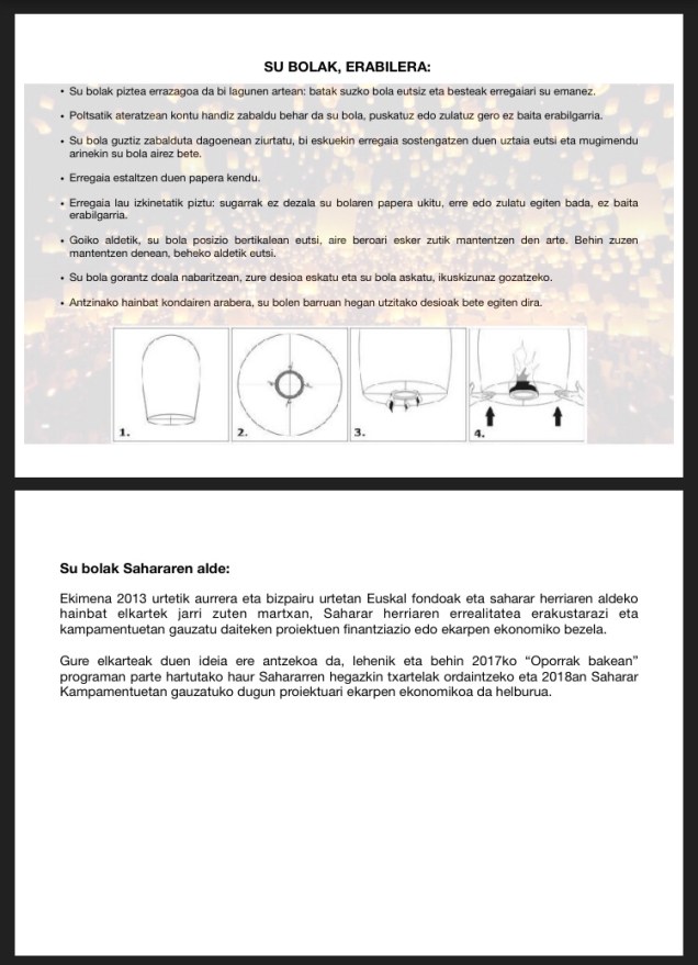 Eskuorrixan ipintxen daben modun ekimen honeaz atatako diru, 2017an “Oporrak bakean” programiaz etorritxako ume sahararran biajeko gastuk ordaindu eta abendun Yaalah elkartik eta udalak kanpamentutan eingo daben “Bir Ganduz 2018” proiektu diruz laguntzeko ixango da!