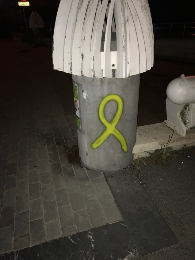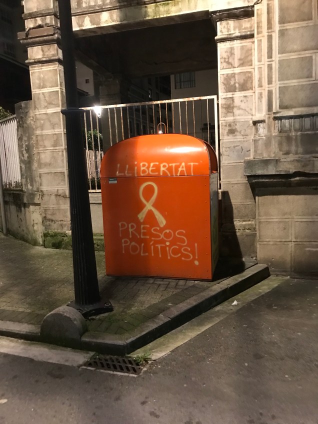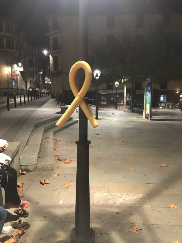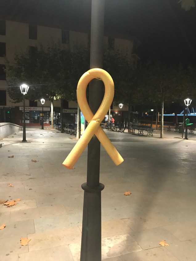 Hamen Ondarrun, diadi dala eta atatako argazkixak diz honek, Udaletxin esteladi eta lazo horixe ipini ben, kofrai zaharrin pankarti gaztik, etxe batzutan be ikusigenduzen katalan banderak batxe txokun be eta kalin hainbat lazo hori agertu zin preso politiko katalanan askatasune eskatzen!