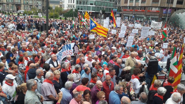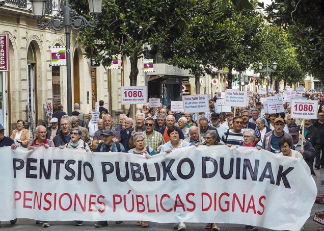 Arratsaldin hego euskal herriko hiriburutan be milaka pentsionistak eta herritxarrek urten dabe kalea: