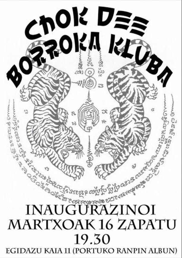Bixar(zapatu) martxoak 16, 19:30etan inagurako dabe Egidazu kaia 11 (portuko ranpin ondun) “Chok dee” burruka kluban lokala. Herriko gazte batzuk, tatamixe, fitnesseako guni eta aktibidade diferentik etxeko lokala prestatu dabe auzolanin.