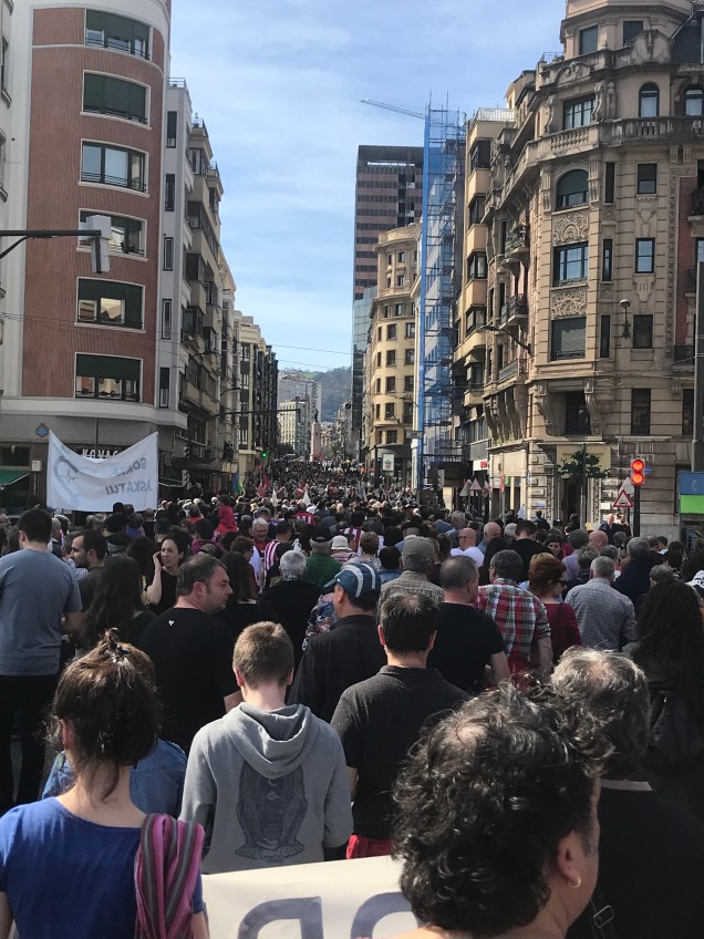 Gaur Ni ZU BI! herri ekimena egon da Bilboko zubixetan, gaxoik dazen presuk behingoz eta berandu baino lehen etxea ekarteko exijiuten! zubixak eskualdeka banatu eta amaieran zutabik batu ahala areatza arte jun ga milaka lagun manifestaziñoin!