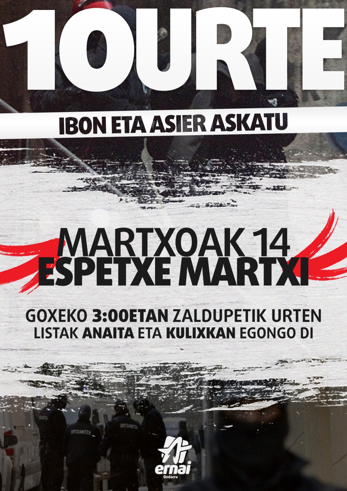 Ernaiko gaztik “10 urte Ibon eta Asier askatu” dinamiki aurkeztu ben ondala 10 urte herrixak bixi ban errepresiñoi egunak eta horren ondorixuk gogoratzeko. Gertakari horren harire Ibonek eta Asierrek askatasunik baik jarraitzen dabe.