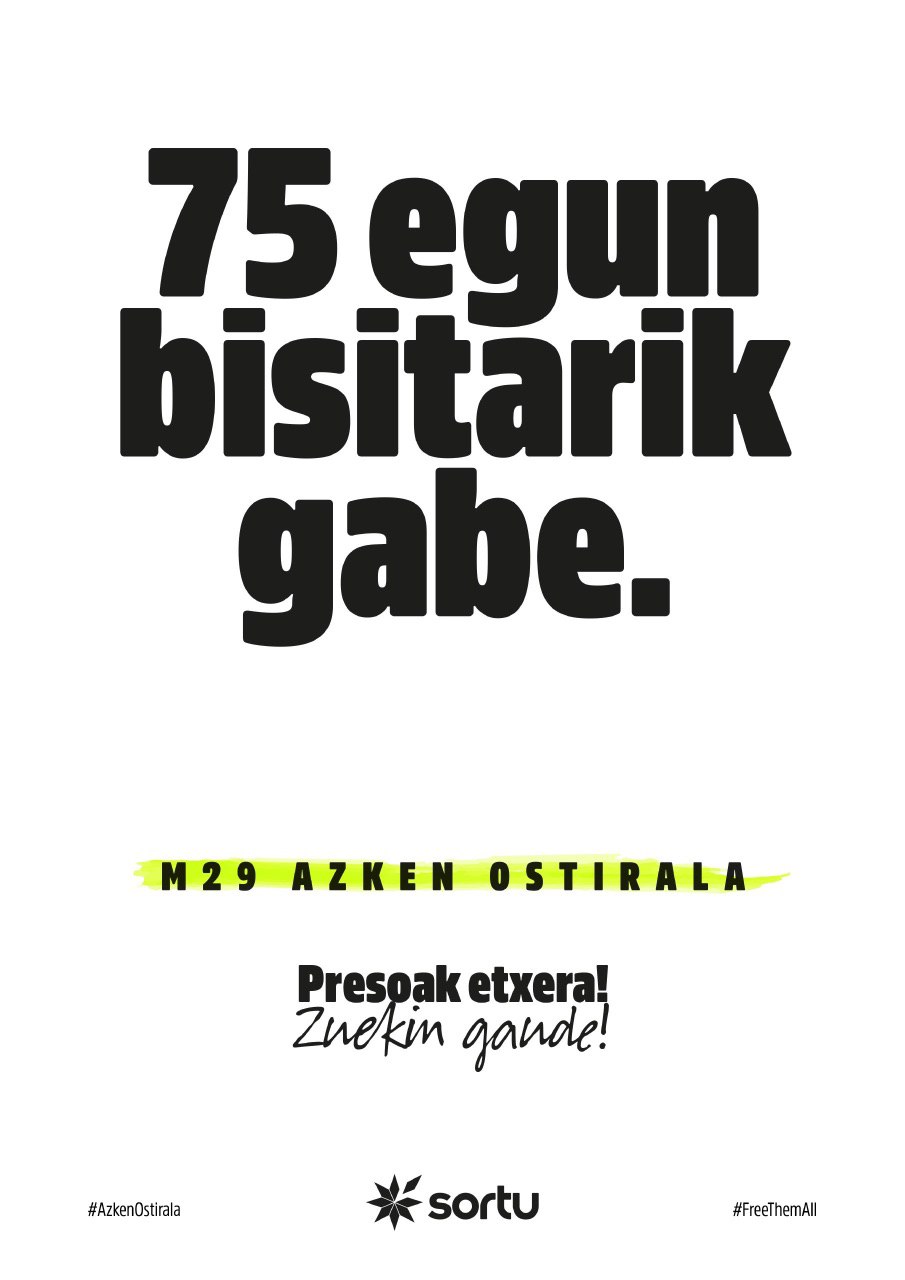 Errez esaten da, 75 egun darue EUSKAL PRESO POLITIKUK etxekukin egon baik. Gu hillebetin gitxi gorabehera konfinata egon gaz eta paretin gorutz altzateko klasin amatxurou. On jarri euran tokixan.