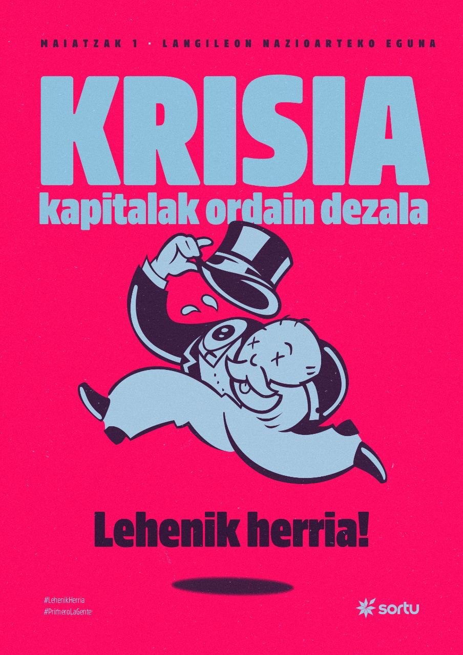 Krisi hau herritxarrok gaz ordaintzen kapitalismun interesetan, normaltasunea buelta eingouela diñue batzuk, baine argi da ez douela nahi lehengo normalidade kapitalista basatire buelta ein. Euskal Herri sozialistin bidin, beharrezku dou langilion mesederako aldaketa soziala, langile klasi lehenengoko planun ipiniko dabena! Hori eguneroko burrukiaz lortu bir dou!