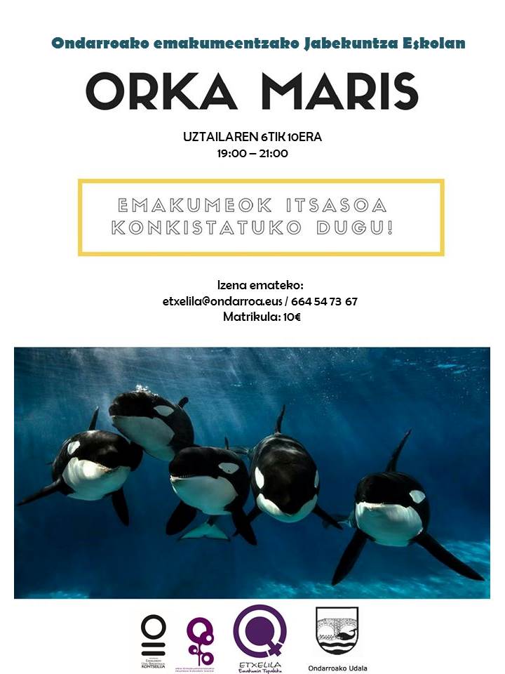 Uztaileako ikastaro bat aurkeztea gatoz gaurkun, May Serrano eta Leire Onzaineaz. Segurtasun neurrixak jarraituz eta protokoluk betez, elkarrekin itsasoa konkistatuko dugu! Orkak nola, taldean itsasoa okupatzea bilatuko duen tallerra da Orka Maris. Indartzeko igeri egin ezik, emakumeok itsosu konkistatu eta gozatzi bultzatuko da, geure buruez birjabetzeko zein gure indarraz kontzientzixi hartzeko. Ikastaru bi zatitxan banatute eongo da, bata ikasgelan eta besti itsosun. Lehenengun elkar ezautu, nahi dugunan kontzientzixi hartu eta ikastarun zehar agertzen dizen sentipen eta aspektuk jorratuko diz. Bigarrenin aldiz, konfiantzaz eta segurtasunez itsosun igeri egiteko beharrezko teknikak ikasiko diz. Uztailan 6tik 10ea | 19:00 – 21:00 | 10€