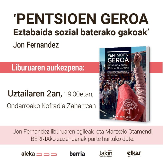 JON FERNANDEZ kazetari Ondarrutarran liburun aurkezpena eukikou ongo eguenin (uztailak 2) Kofrai Zaharrin arratsaldeko 7 retan. Hain pil-pilin dan gaxan ingurun idatzi dau JONek, Pentsiñoik. Aurkezpenin beraz batea MARTXELO OTAMENDI (BERRIAko zuzendaxe) eongo da. Hurreatu berta!
