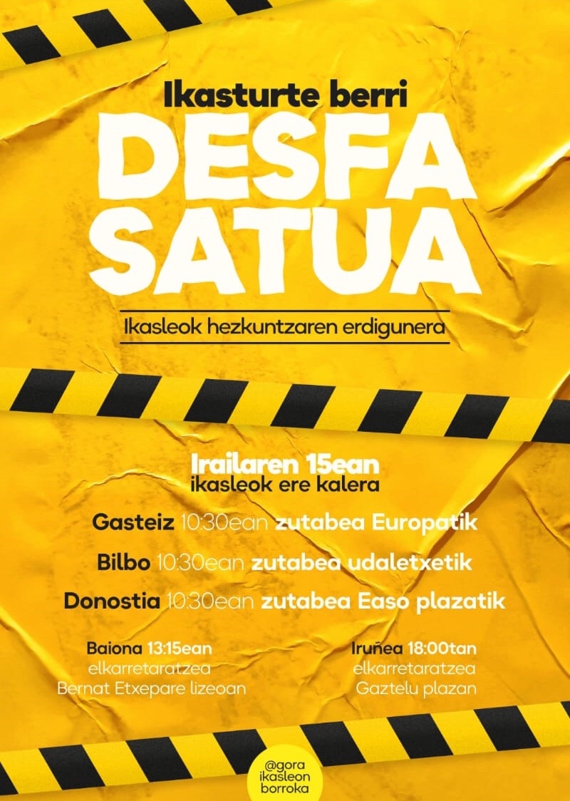Ta hezkuntzin ingurun gabizenetik, ezin dou argitalpen hau itxi asteburu honetan sortu barri dan ikasle antolakunde barrixe aitxatu baik. IKAMA (Ikasleria martxan!) ikasle antolakundi sortu de euskal eskola burujabe, herritxar eta duinan alde burrukan etxeko!