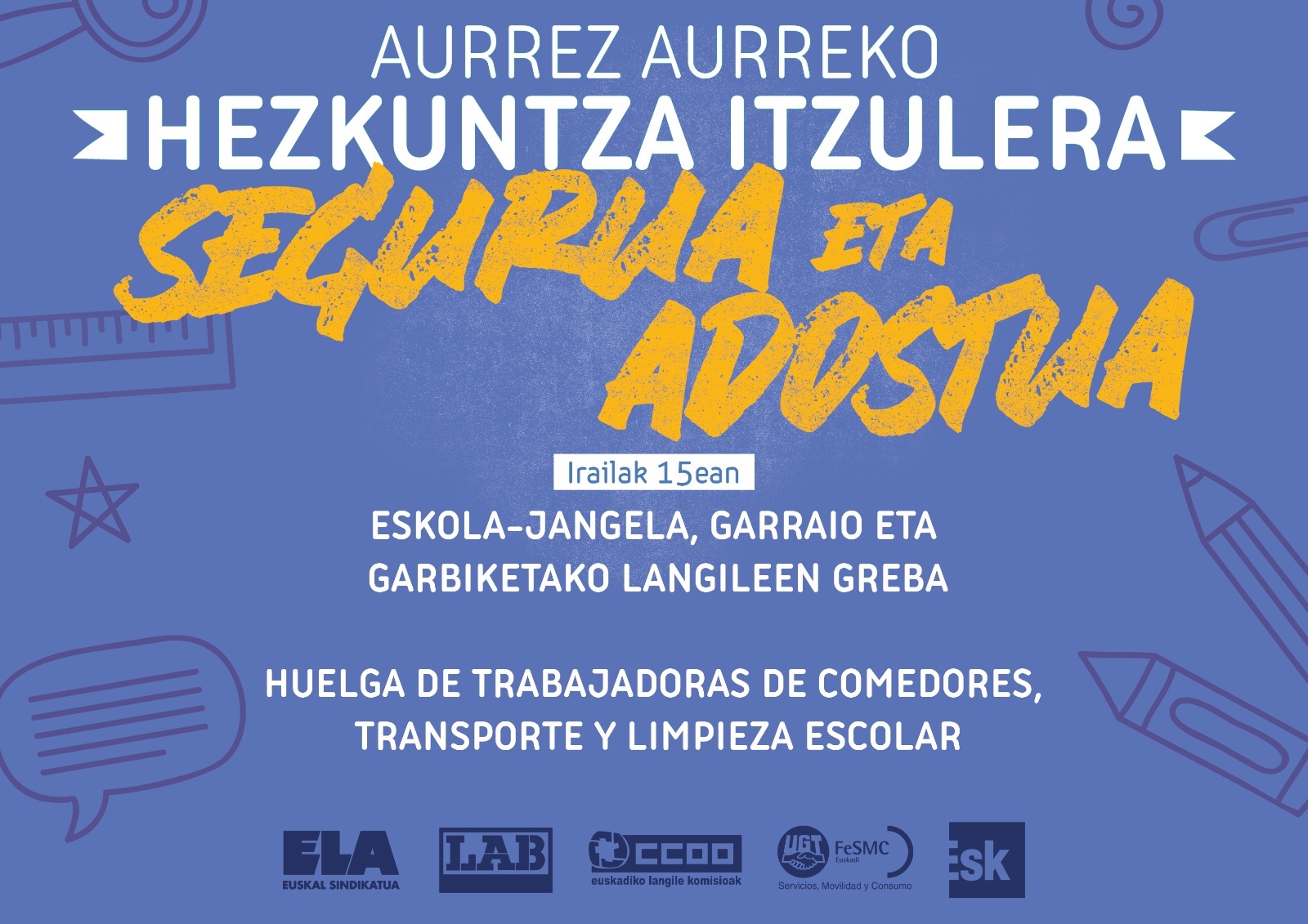 Gaur (Irailak 15) hezkuntza komunitate osuk grebi dauke deitxute. Ikasturte hasiera DESFASATU hau salatzeko, segurtasun neurri adostukin aurrez aurreko hezkuntza itzuleri eskatzeko eta euskal eskola publiko, seguru eta duin bat aldarrikatzeko. Hiriburutan mobilizaziñoik deitxu dabe. Hamen lagaten douz greba honen ingurun atatako kartel ezberdinak.