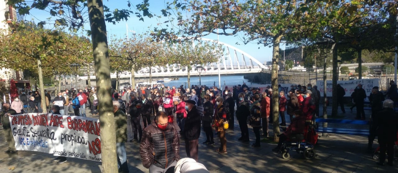Etxin geatute iñok ez dau iñoiz ixe lortu, ta gauzak lortzen dizenin DANANtzako ixaten diz (epeletan dazenantzako be) . Egi borobille dala hori esaten dozku Alamedan batzen dizen Pentsionistak ta gaur be 12 xak puntun pankarta atzin batu diz 177 lagun beheko argazkixan ikusten dozuen latxeik. Datorren asteleheneako be toki eta ordu bardiñin geatu diz, ta Abendun 5 in manifestaziñoi bat etxeko deixe eindabe. Jo Ta Ke PENTSIÑOI DUINAK LORTU ARTE!