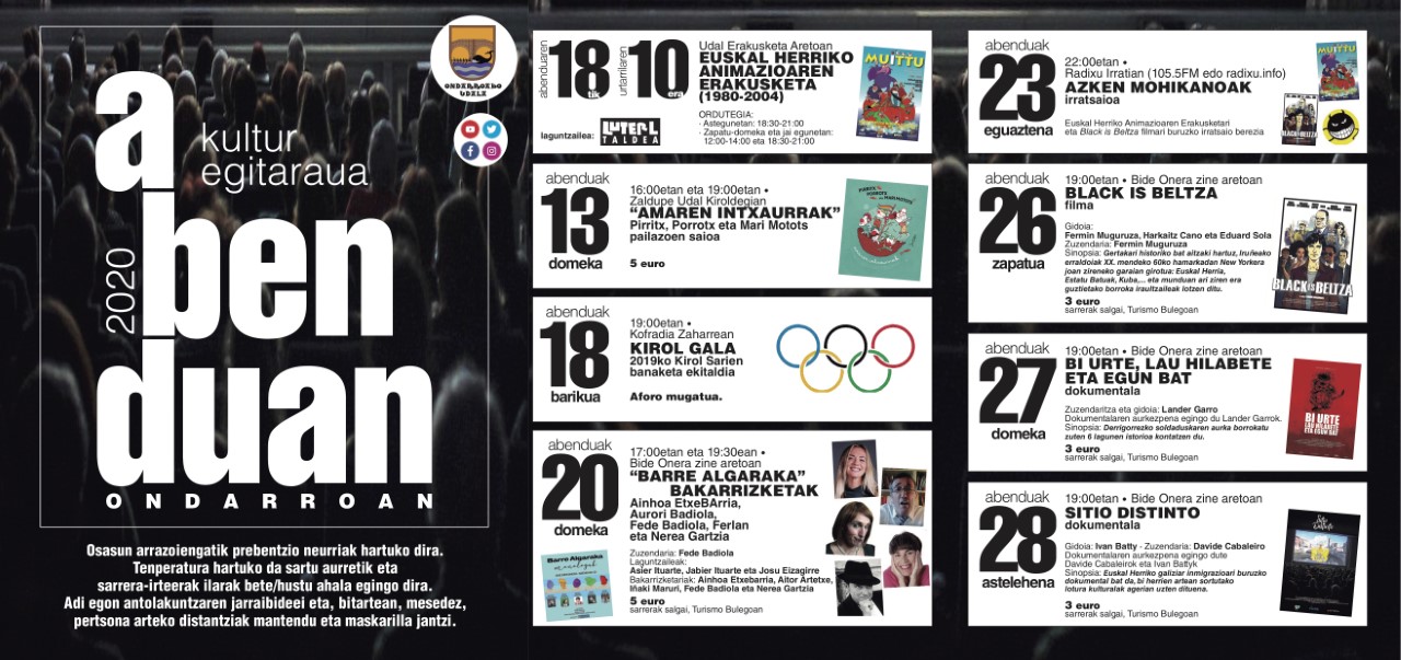 Abendu kultur ekimenez beteta dator azpixan ikusiko dozuen latxeik. Mamarrun eragiñez ekitaldi batzuk jende kopuru konkretu bateaz ein bikodizenetik komeni de aurretixaz sarrerak jasoti.