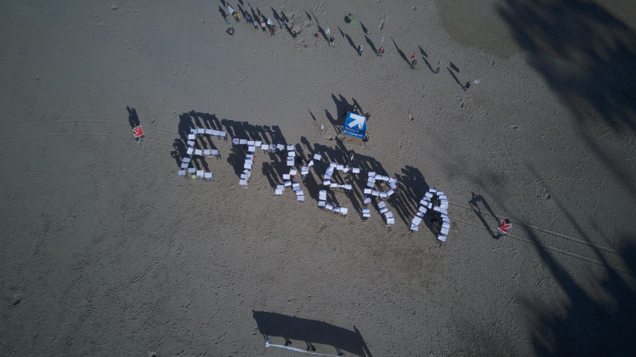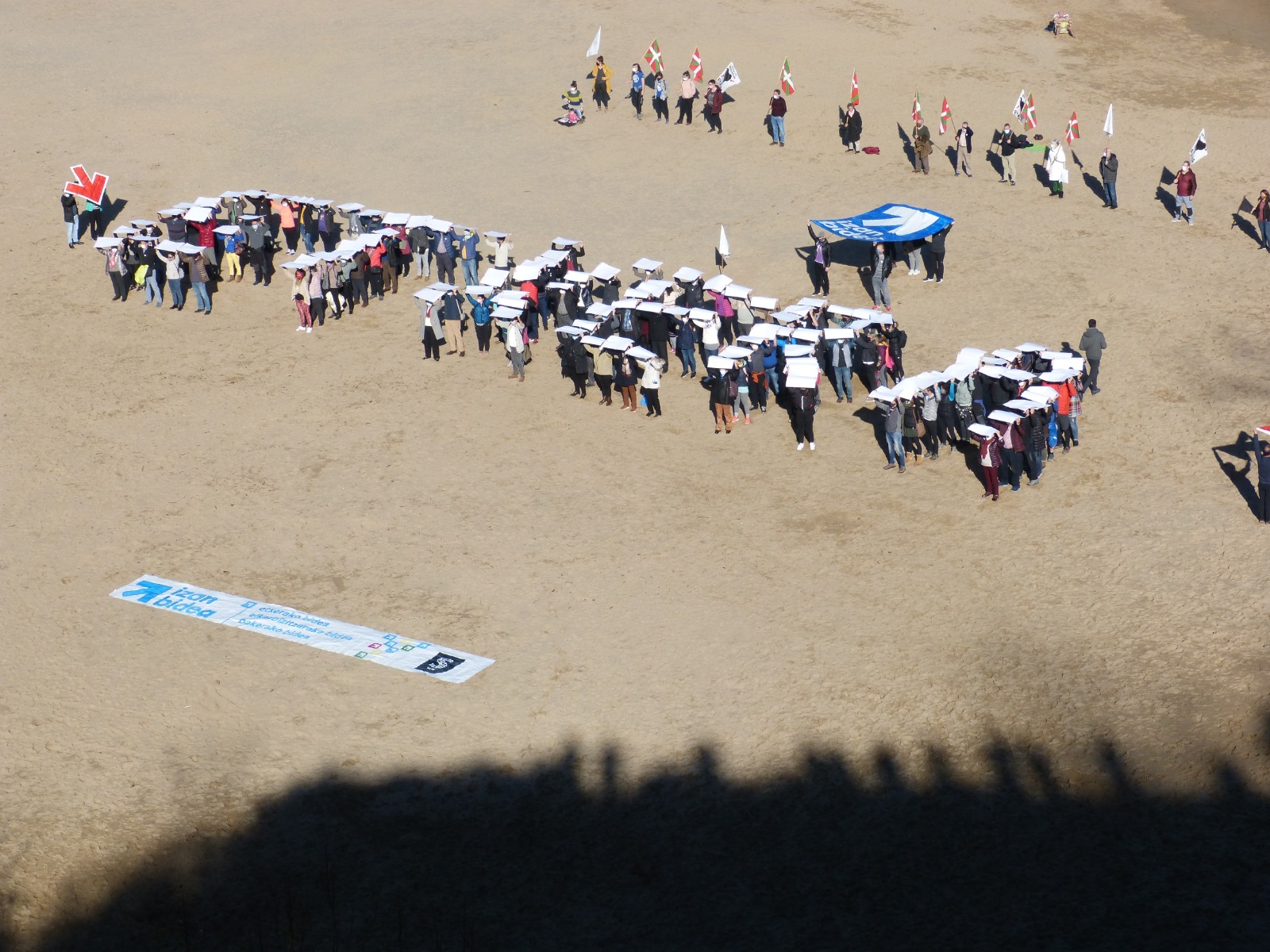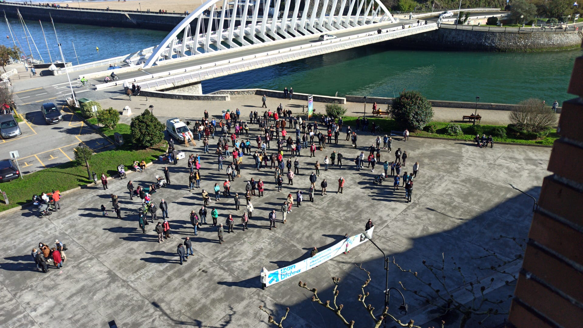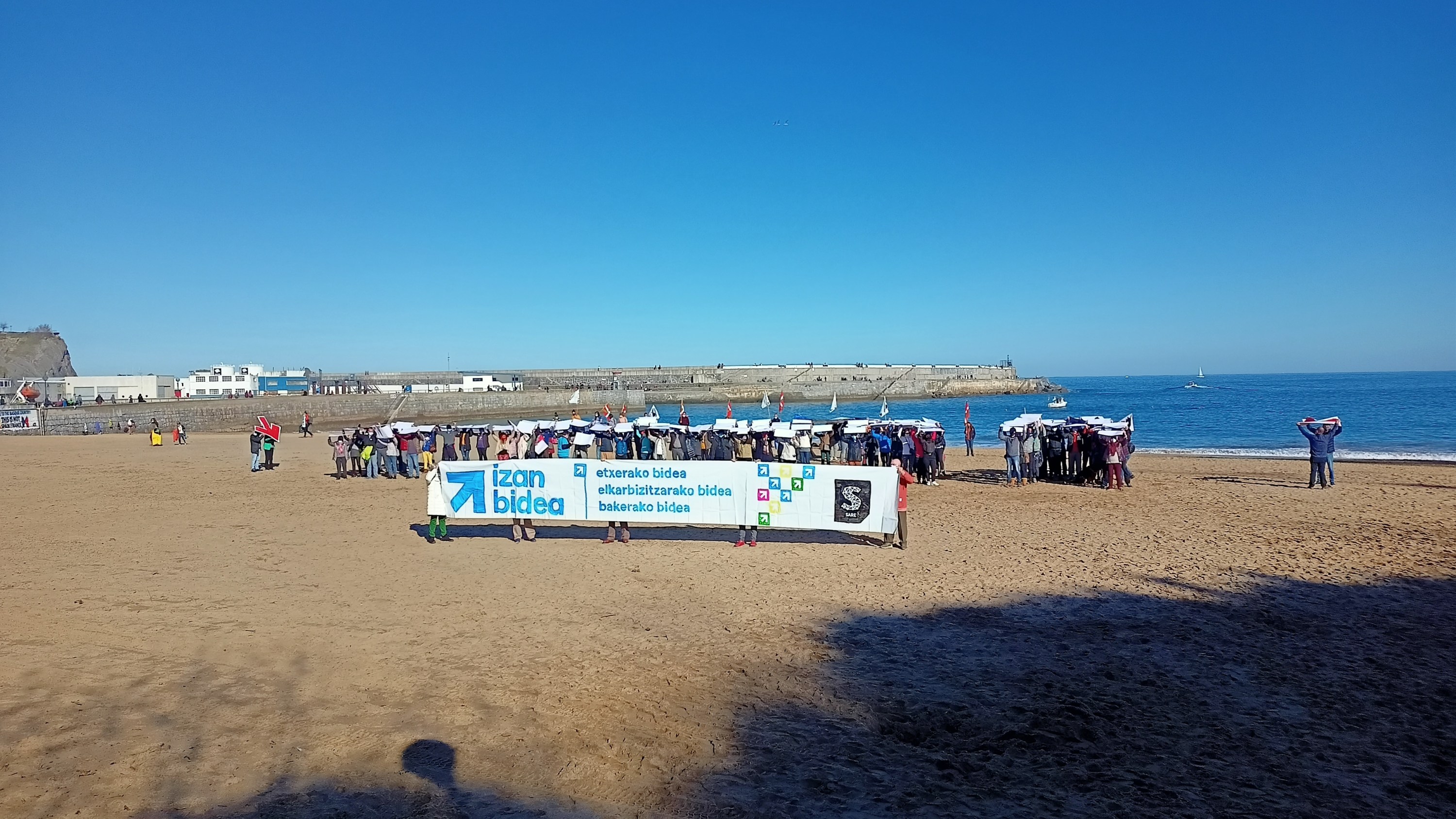 Gaur hamarnaka herritxar batu gaz Ondarruko SAREk ein daben deialdixaz bat etxen. Lehenengo Itxas Aurreko plazan kontzentraziñoi ein de eta gero gizakatin jun ga hondartzaarte mosaiku osatzeko.