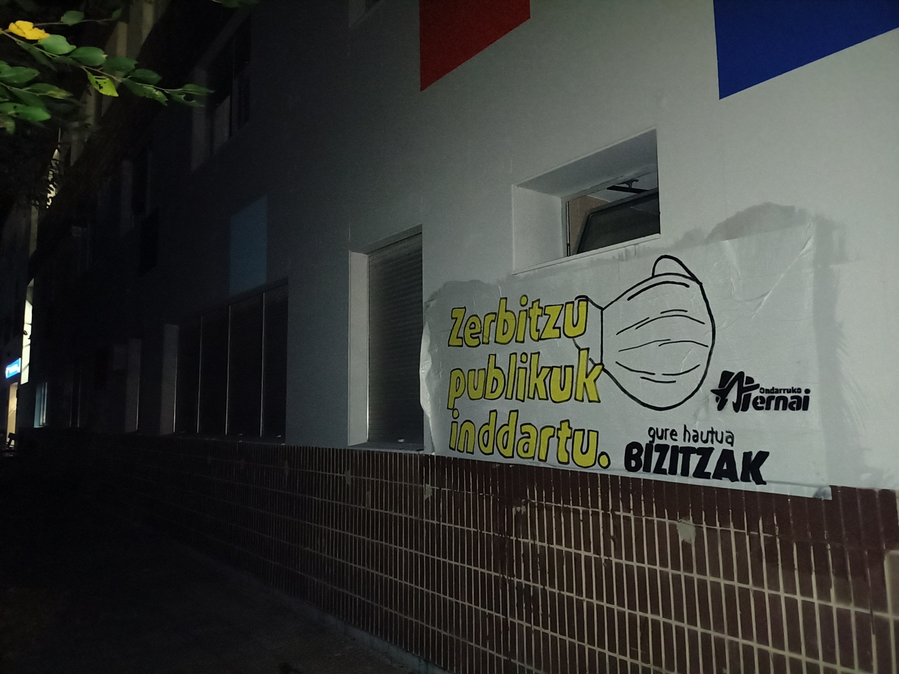 Pasan astin eta aste honetan Ondarruko ERNAIko gaztik aldarrikapenez bete dotxuez herriko txoko ezberdiñak. Osasun egoerin eragiñez ipinitxako murrizketak, jende jakin batei eragitxen dotsela eta kontrol soziala bultzatzeko dala salatu dabe.