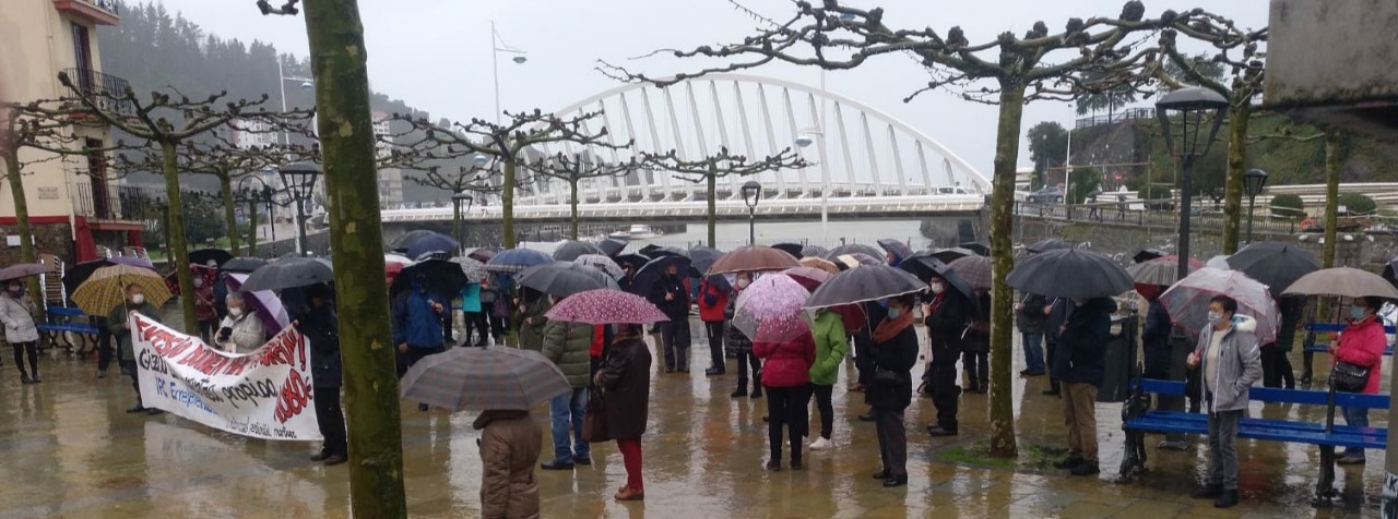 Zapatuko mobilizaziñoin ostin gaur be Alamedan batu diz Ondarruko Pentsionistak. Egueldi zatarra euki dabe bañe aterkiñan azpixetan batu diz 145 lagun, datorren asteleheneako hitzordu be eindabe.